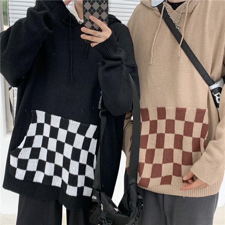 秋物ウィンター韓国ファッションNEWスタンダードポケットカジュアルルーズニットフードセーター メンズレディース レトロ オータム 冬物 ステッチ スタイル Studios6221064818 | pLegLad Studios