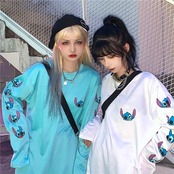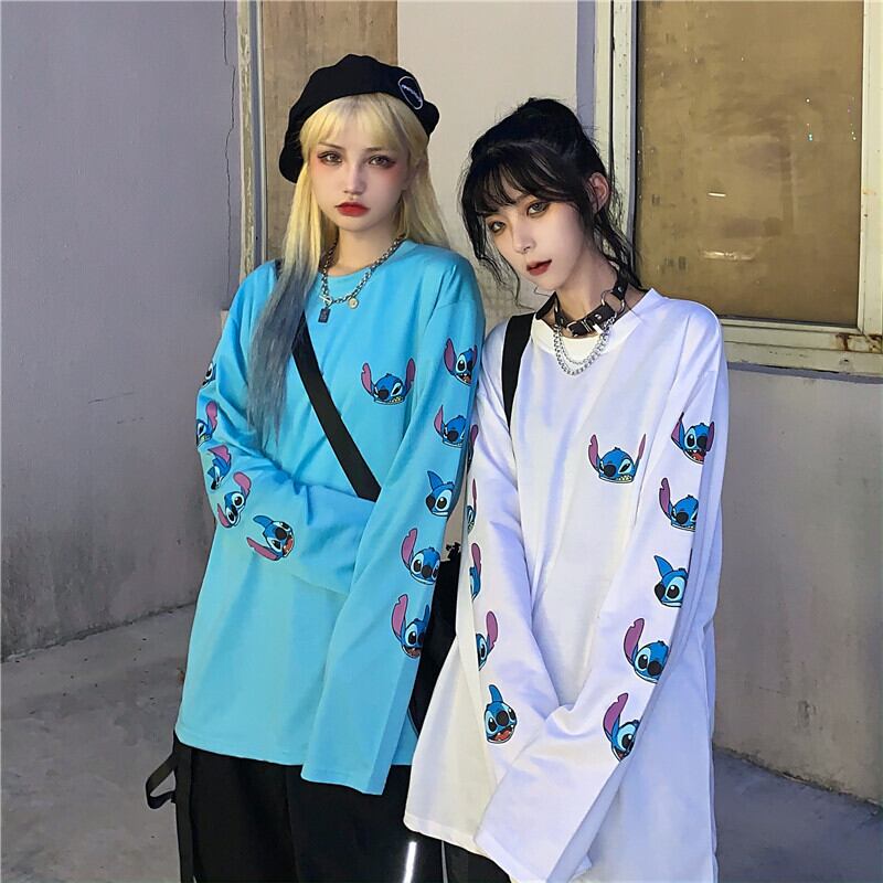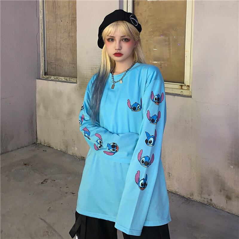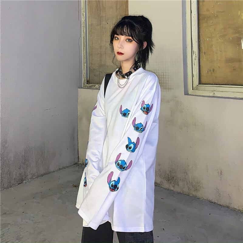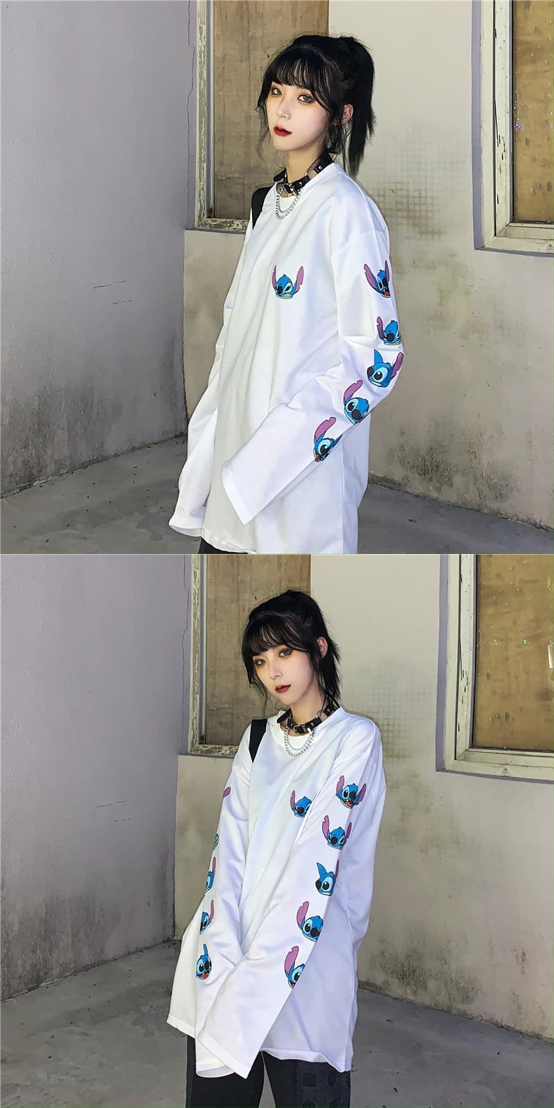 秋物韓国ファッションNEWスタイルプリント柄ルーズカジュアルゆったりTシャツトップス レディース ロング 原宿 オータム 長袖 Studios12774825487 | pLegLad Studios