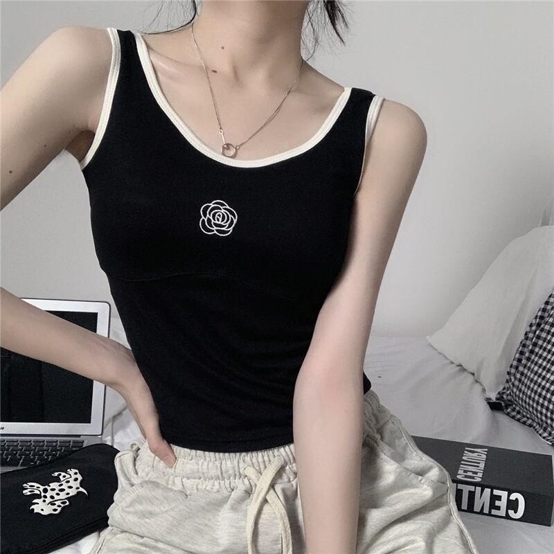夏服韓国ファッションNEWスタイルスタンダード刺繍カラーノースリーブレディース レトロ ストリート 原宿 夏物 フラワーデザイン Studios5562108035 | pLegLad Studios