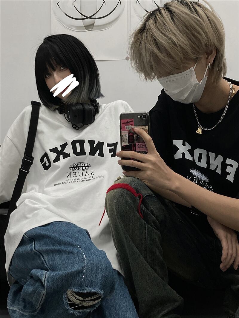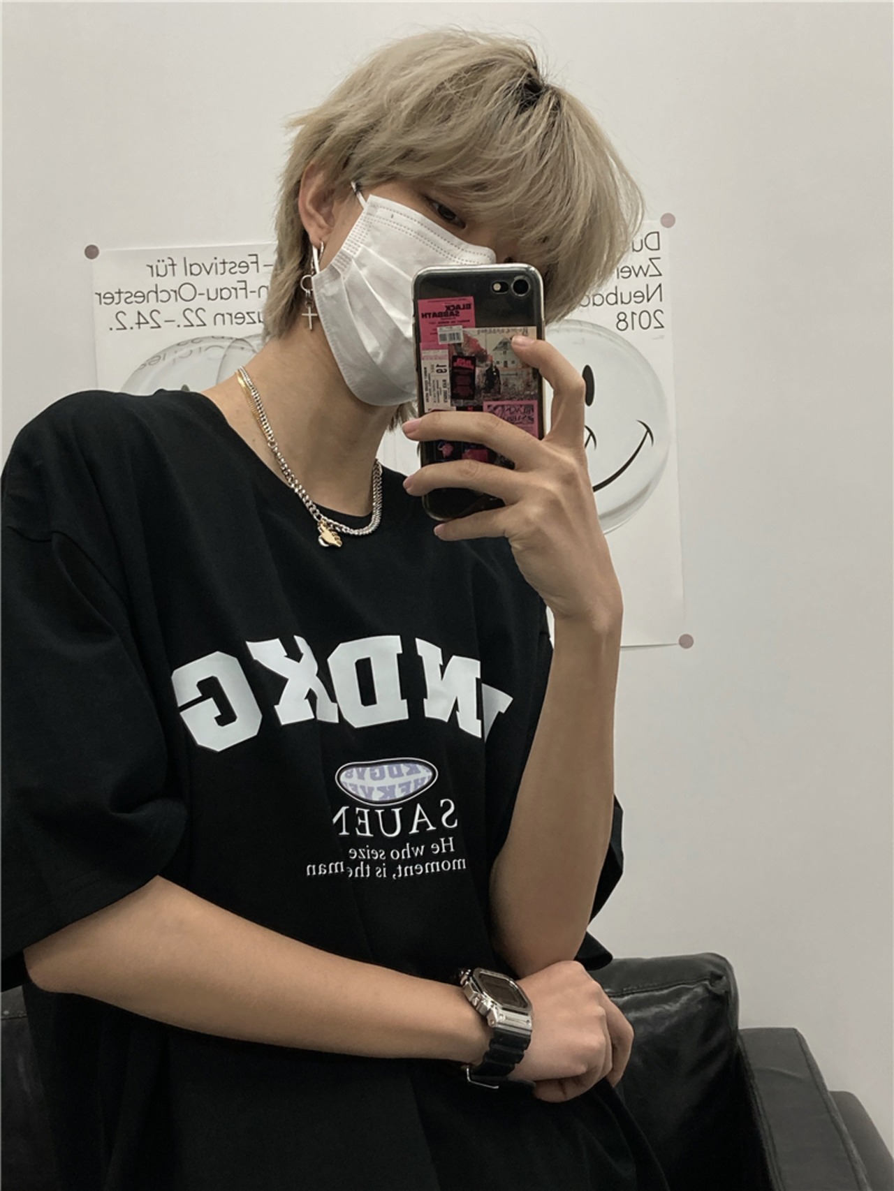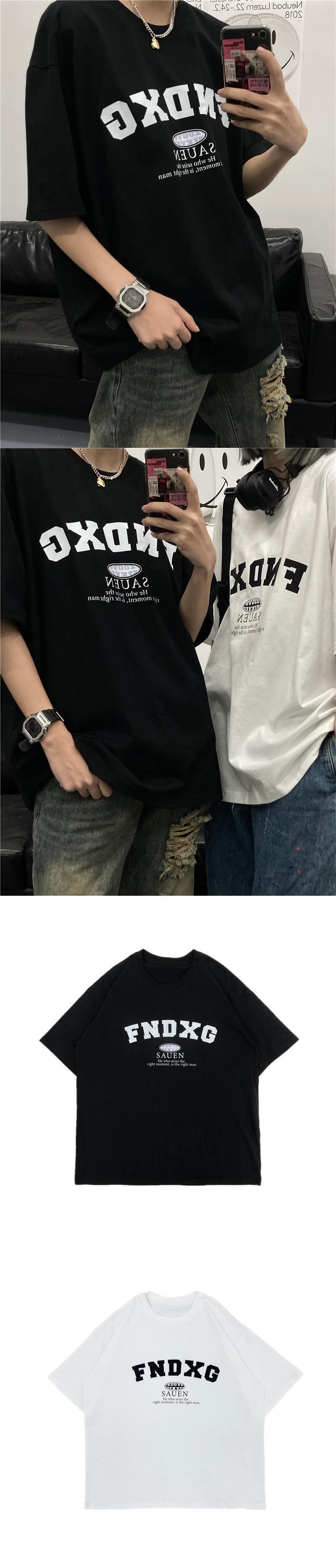 夏服韓国ファッションNEWスタイルブラックホワイトプリントルーズラウンドネック半袖スリーブTシャツメンズレディース ショート ハーフスリーブ ストリート 原宿 夏物 Oネック Studios32176407619 | pLegLad Studios