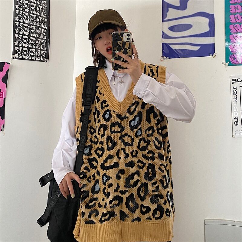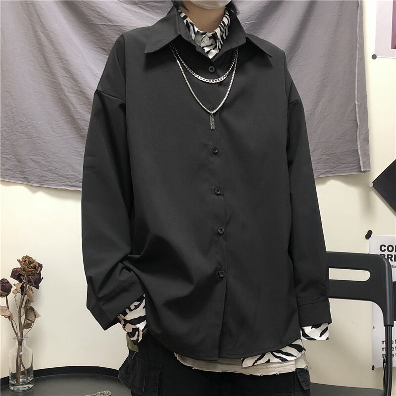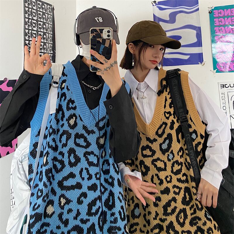 スプリング韓国ファッションNEWルーズレオパードプリント柄ニットウールソリッド カラーシャツ メンズレディース ロング ストリート 春物 ソリッドカラー スタイル 長袖 Studios3714795201 | pLegLad Studios