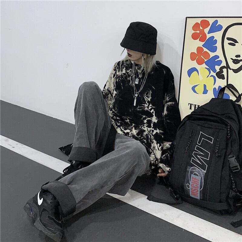スプリング韓国ファッションNEWスタンダードダークルーズラウンドネックゆったりメンズレディース ロング レトロ シャツ ストリート 春物 Oネック Tシャツ ステッチ スタイル 長袖 Studios30358993453 | pLegLad Studios