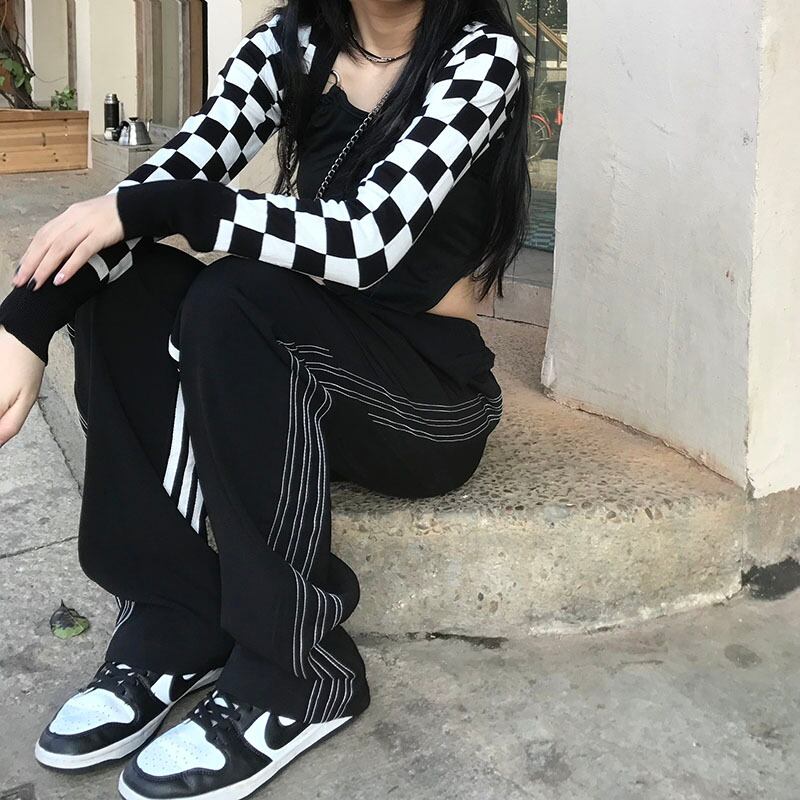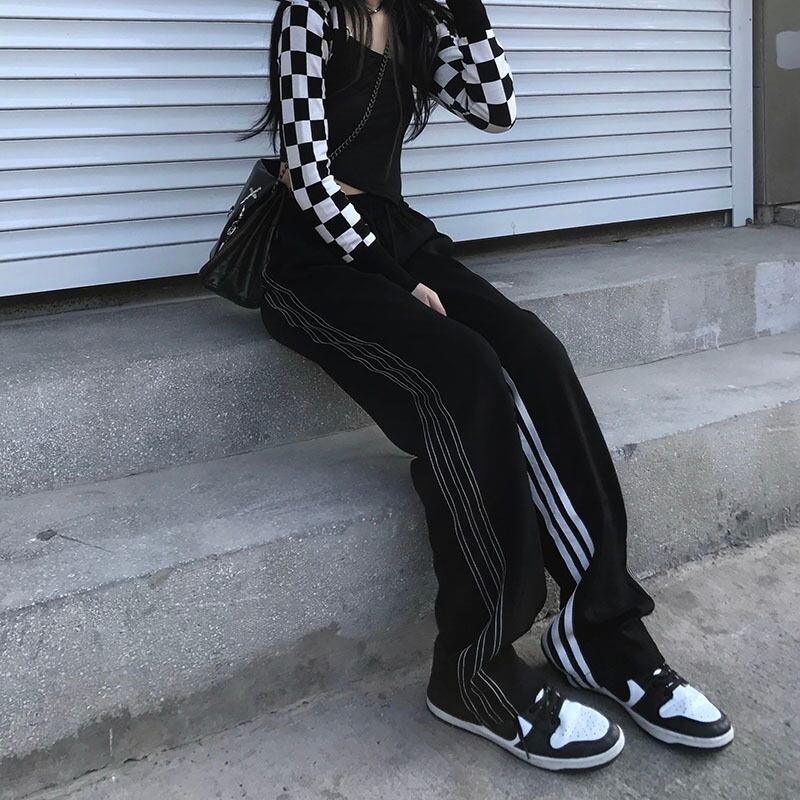 韓国ファッションNEWスタンダードストライプストレッチウェストカジュアルパンツ レトロ エラスティック 伸縮 ステッチ スタイル ウエスト Studios13419784305 | pLegLad Studios