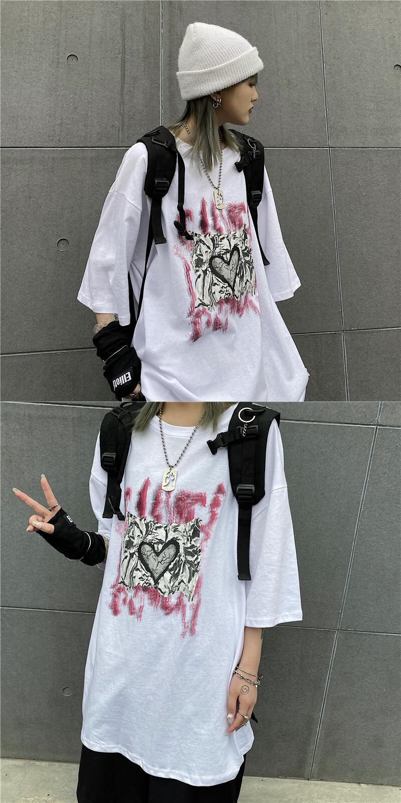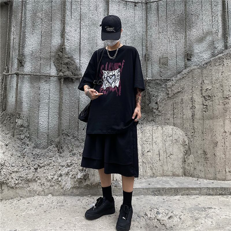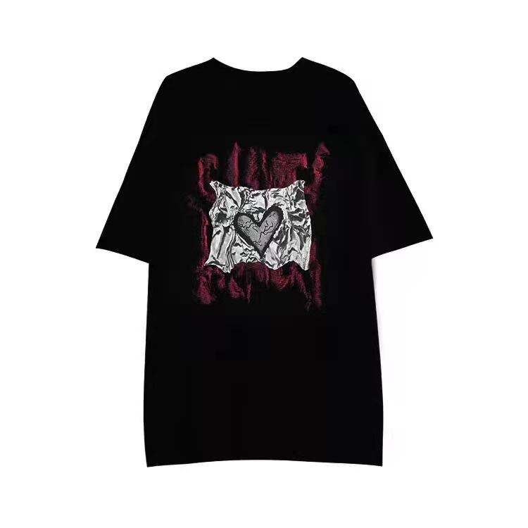 夏服韓国ファッションNEWスタイルプリーツプリント柄ラウンドネックルーズTシャツメンズレディース ストリート 原宿 夏物 Oネック Studios2663886639 | pLegLad Studios