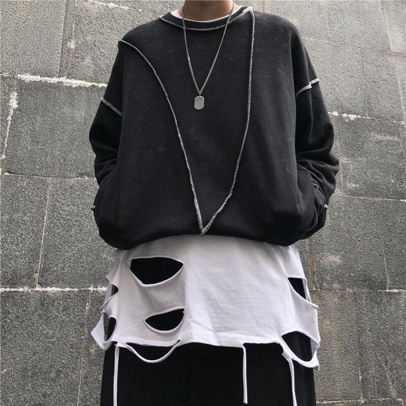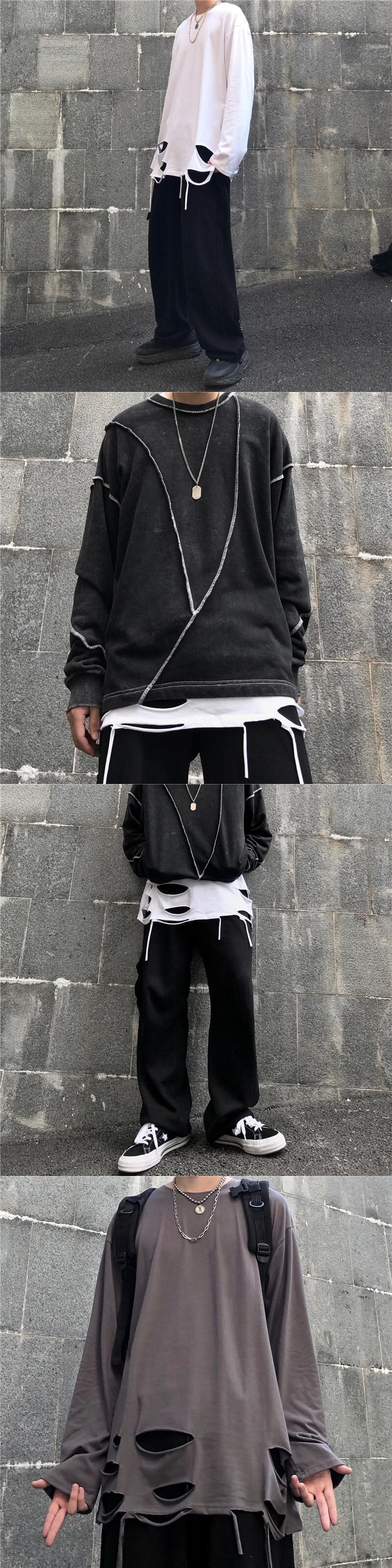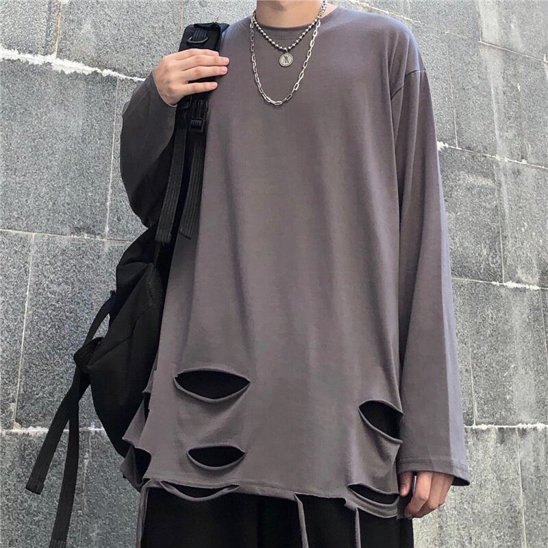 ソリッド カラーゆったりシャツ トップス レディース秋物韓国ファッションNEWダークスタンダードルーズTシャツ ロング レトロ オータム ソリッドカラー スタイル 長袖 Studios44170857318 | pLegLad Studios