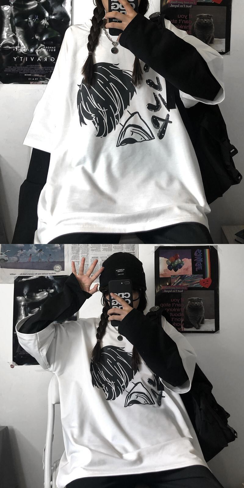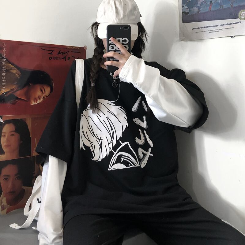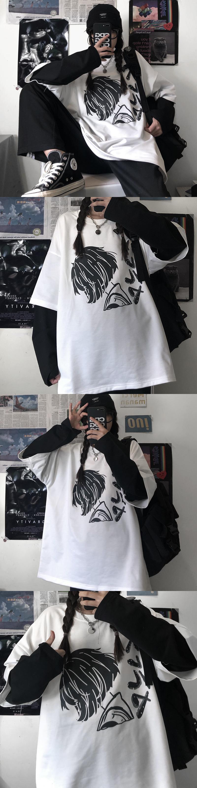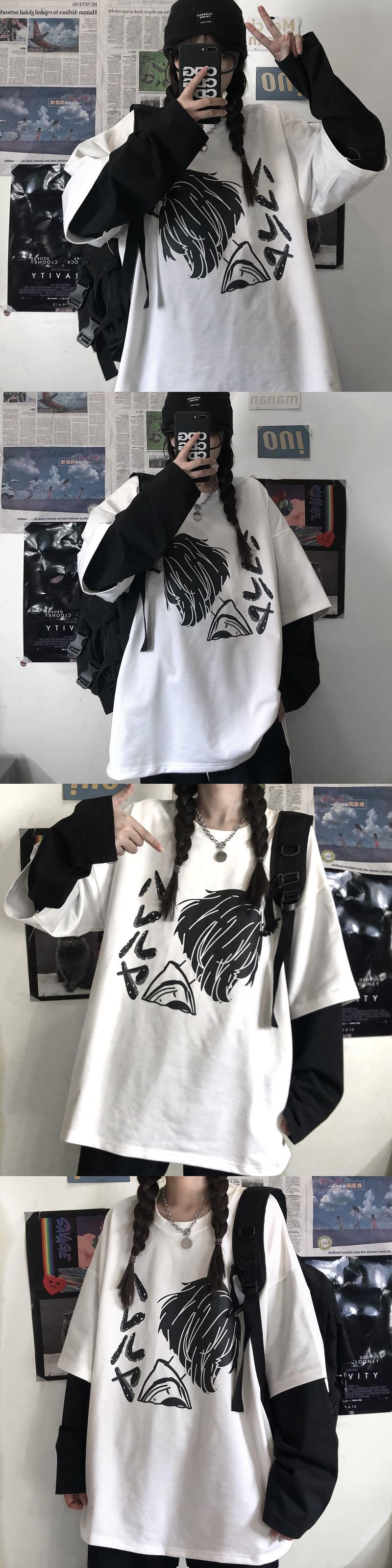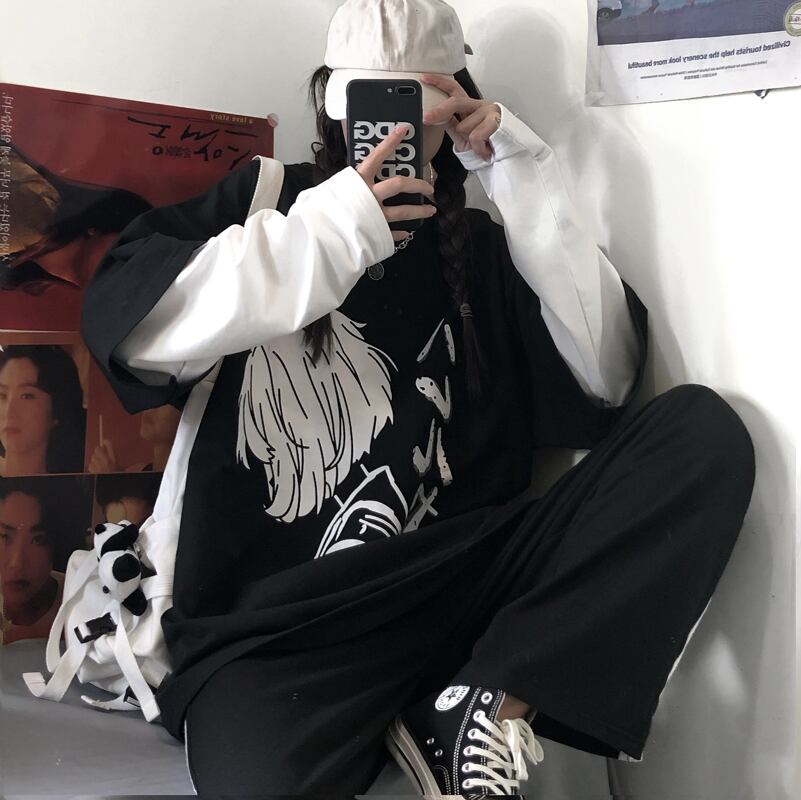 スプリング韓国ファッションNEWスタイルプリントルーズラウンドネックTシャツメンズレディース ロング ストリート 原宿 春物 Oネック ステッチ 長袖 Studios59618454008 | pLegLad Studios