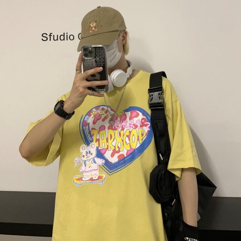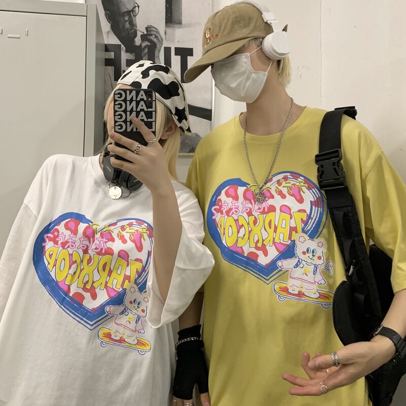 夏服韓国ファッションNEWスタイルスタンダードプリント柄カジュアルルーズラウンドネックTシャツ レトロ ストリート 原宿 夏物 Oネック Studios87024408791 | pLegLad Studios