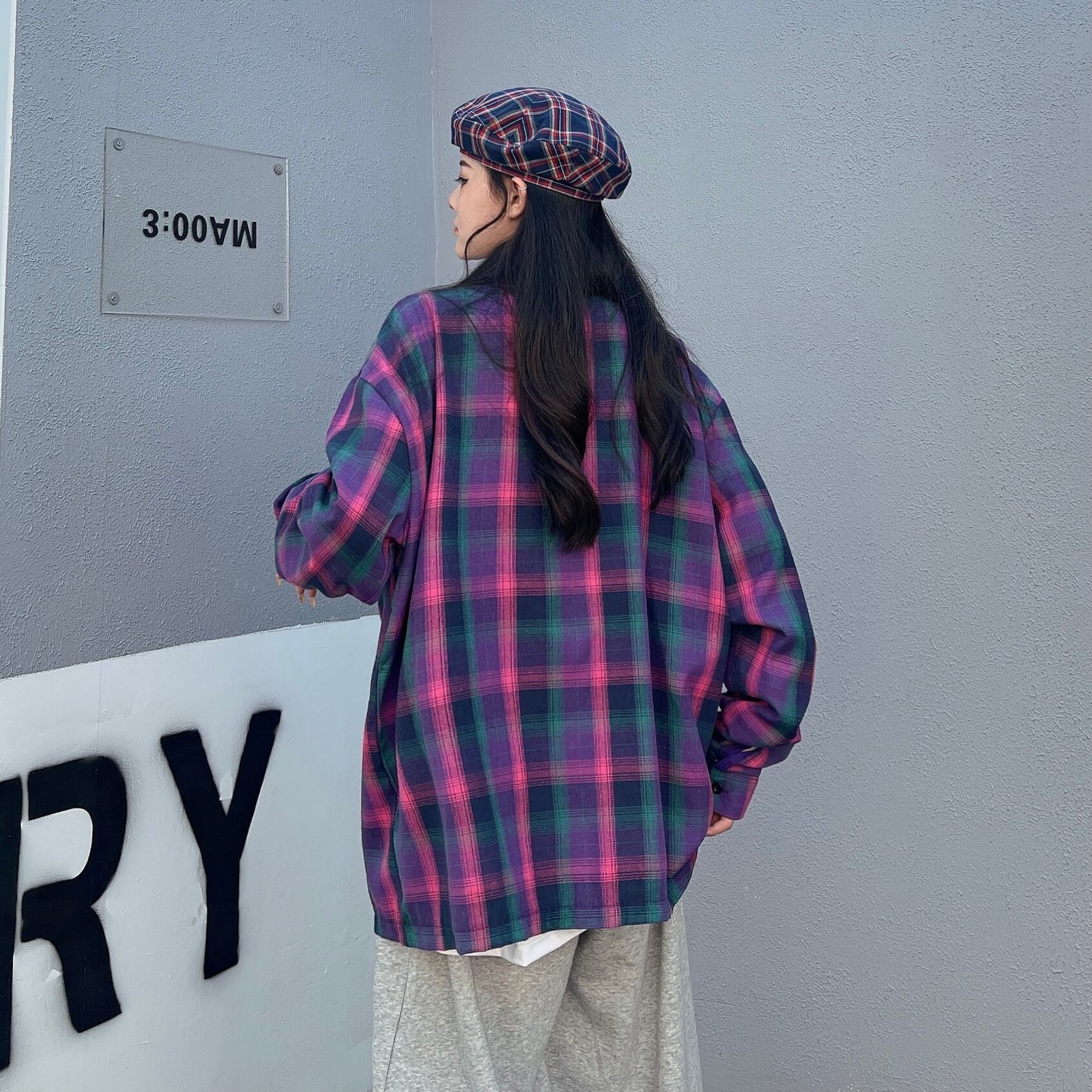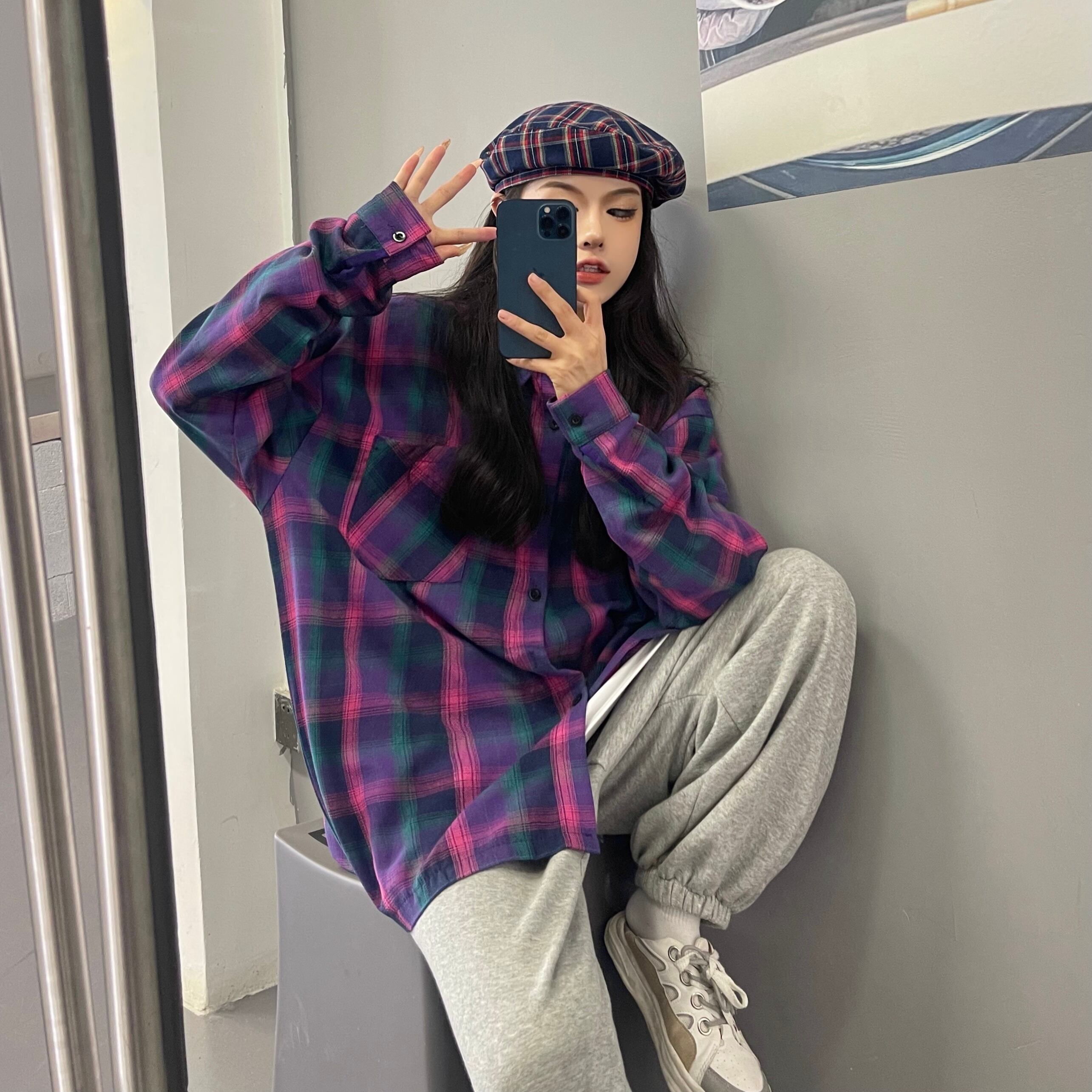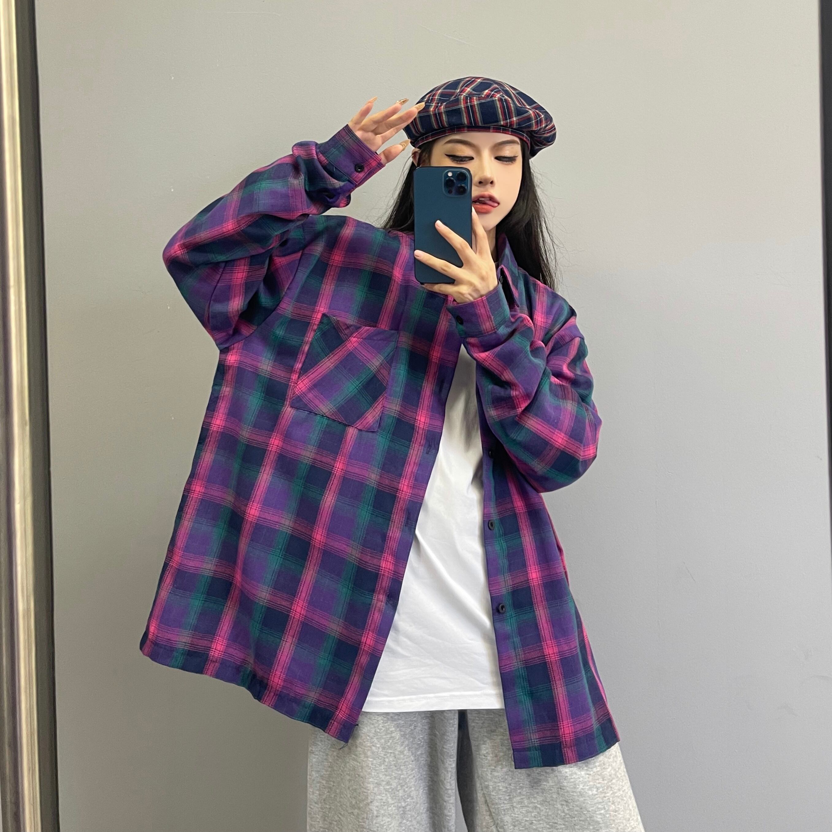秋物ウィンター韓国ファッションNEWスタイルスタンダードカラー格子柄カジュアルルーズシャツ トップス ロング レトロ オータム 冬物 長袖 Studios61278428094 | pLegLad Studios
