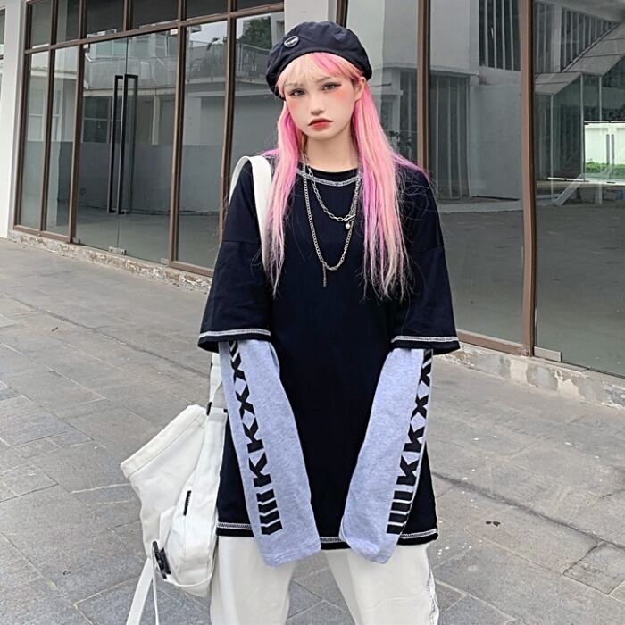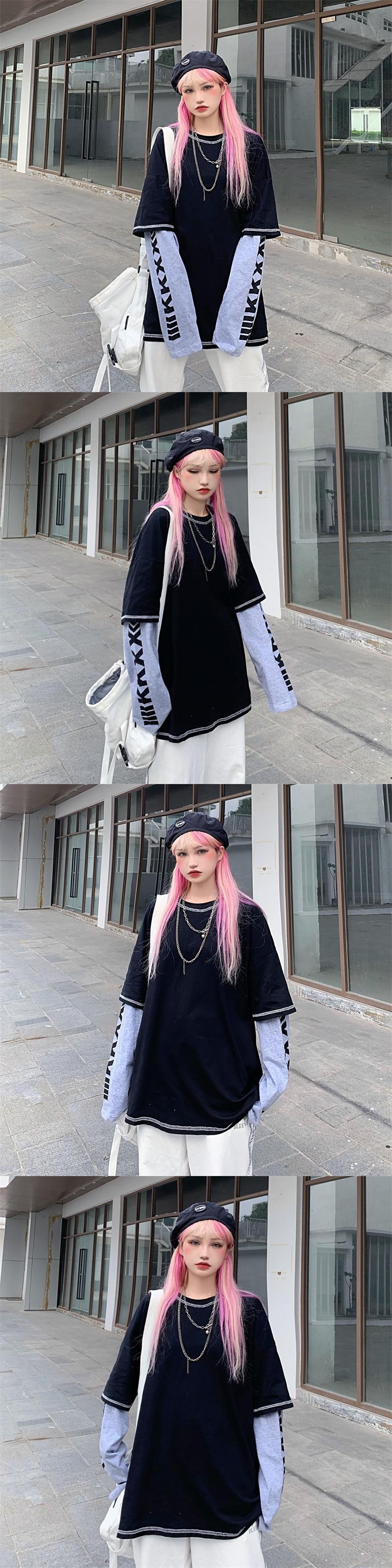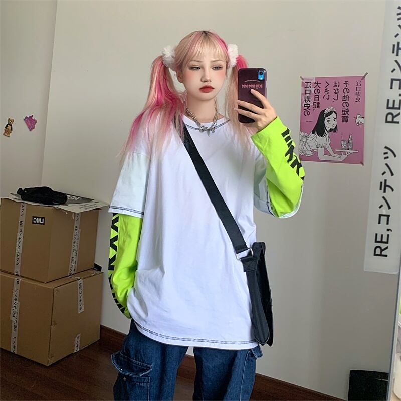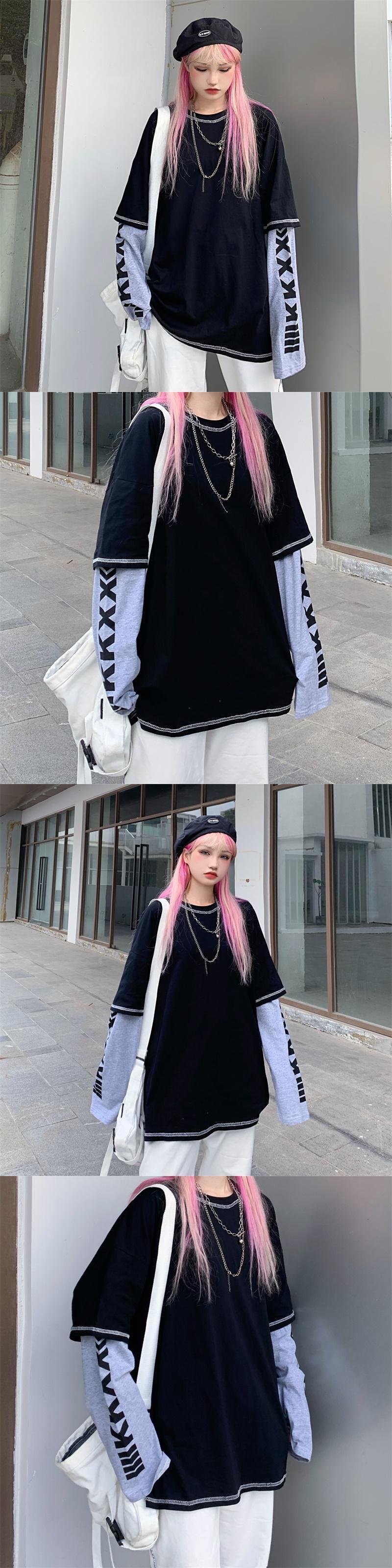 秋物韓国ファッションNEWスタイルプリントルーズカジュアルTシャツトップス レディース ロング 原宿 オータム ステッチ 長袖 Studios10076207163 | pLegLad Studios