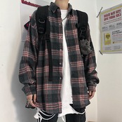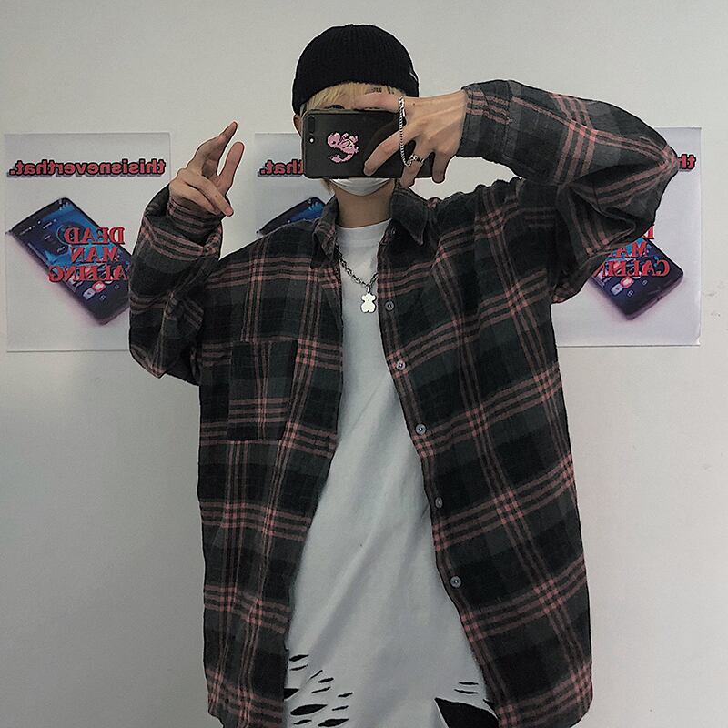 秋物韓国ファッションNEWスタイルスタンダード格子柄シャツ ジャケット ルーズメンズレディース ロング レトロ 原宿 オータム 長袖 Studios43205073359 | pLegLad Studios