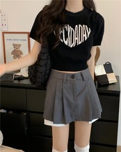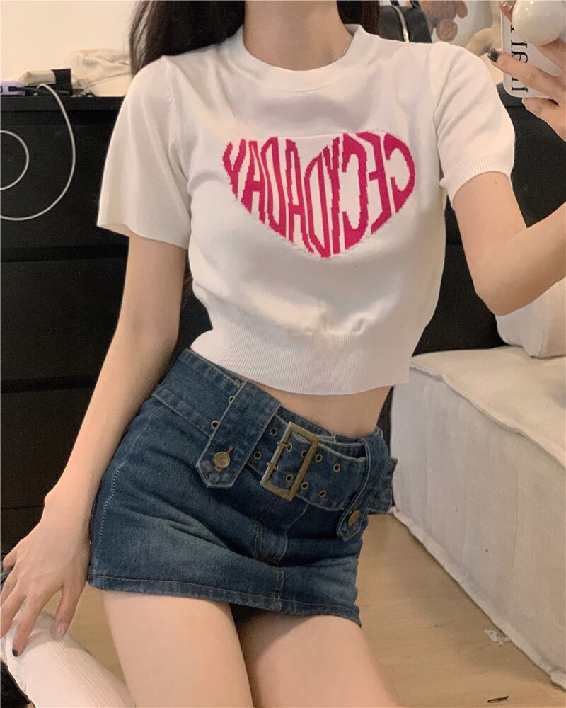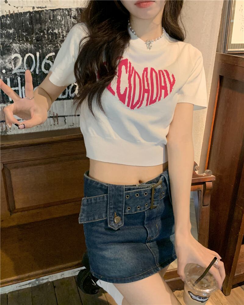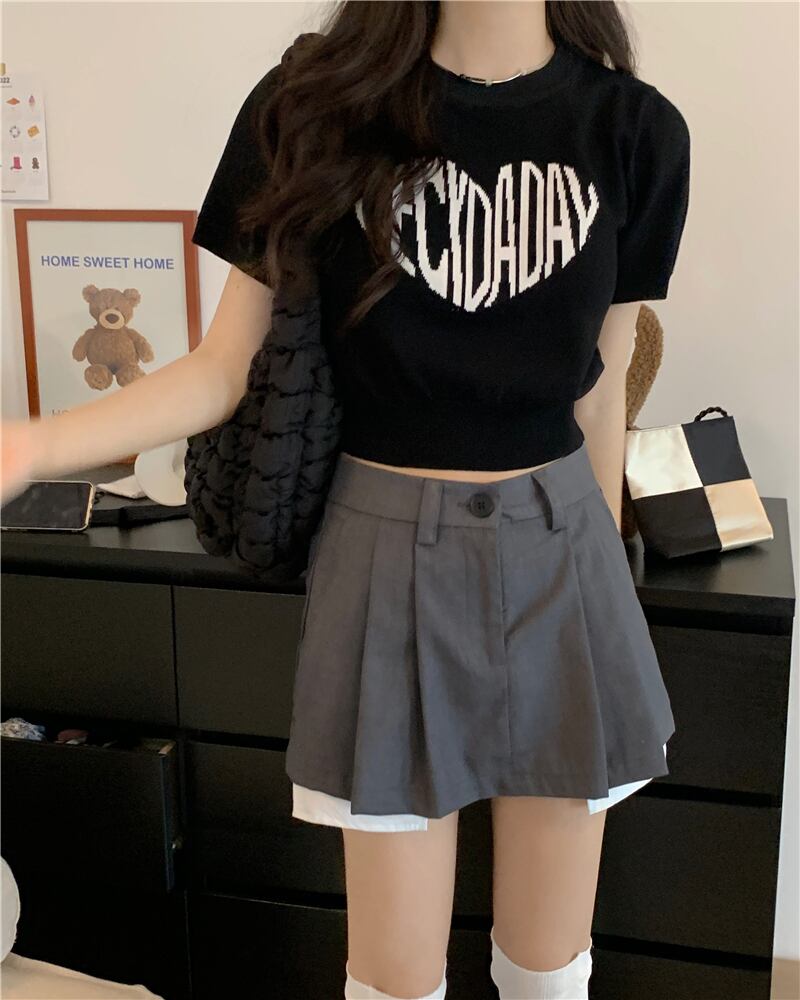 夏服韓国ファッションNEWスタイルスタンダードジャカードショートニットセーター Tシャツ レトロ 大人ガーリー スウィート キュート カジュアル 夏物 Studios73950218286 | pLegLad Studios