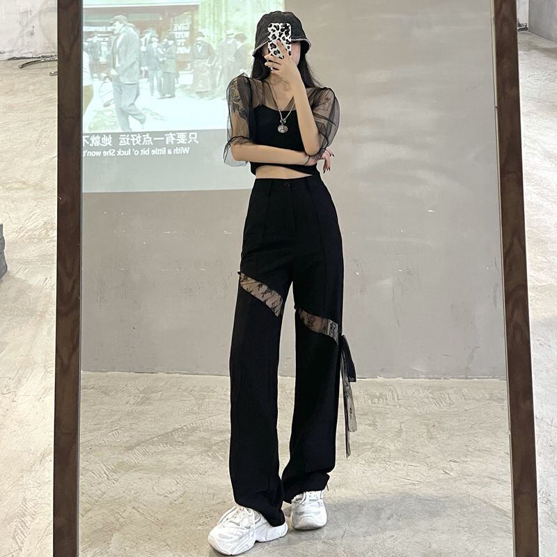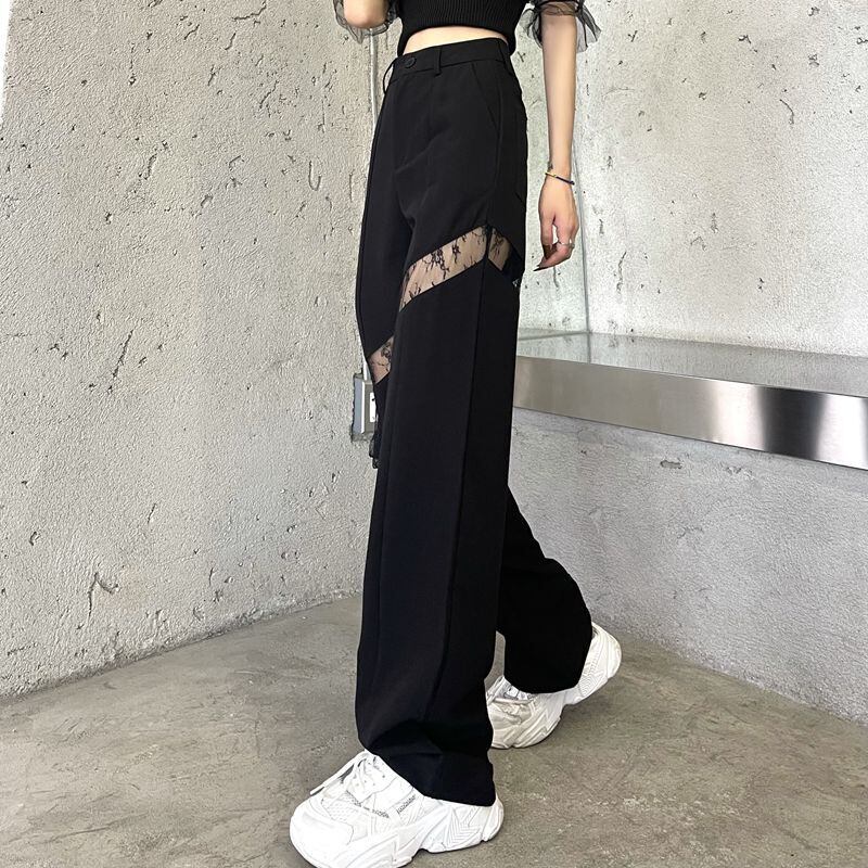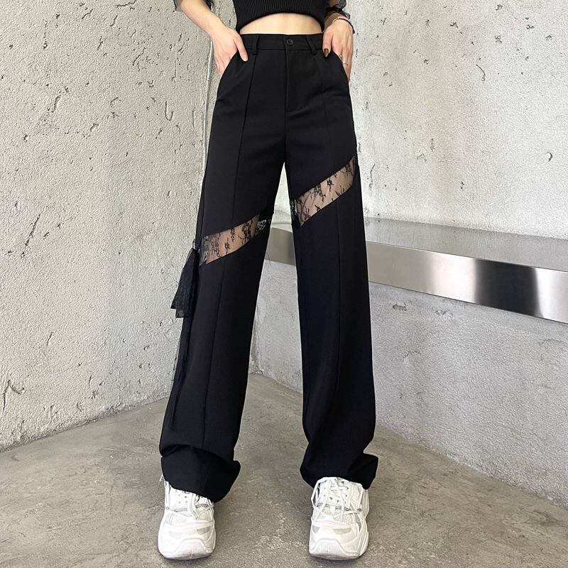 カジュアルパンツ 夏服韓国ファッションNEWレースルーズハイウェストウェストワイドレッグ 夏物 ワイドパンツ ステッチ スタイル ウエスト Studios28594221082 | pLegLad Studios