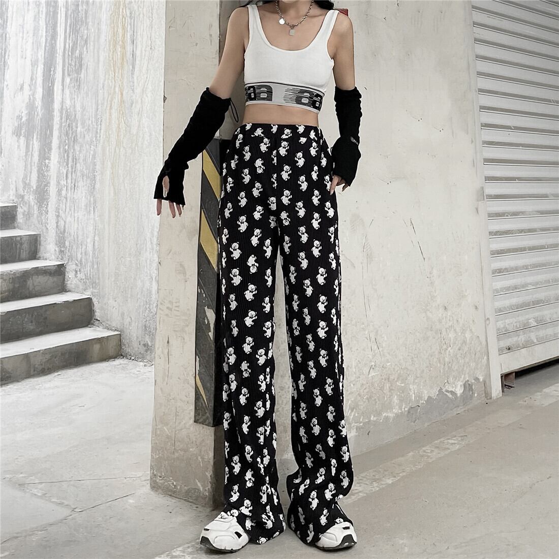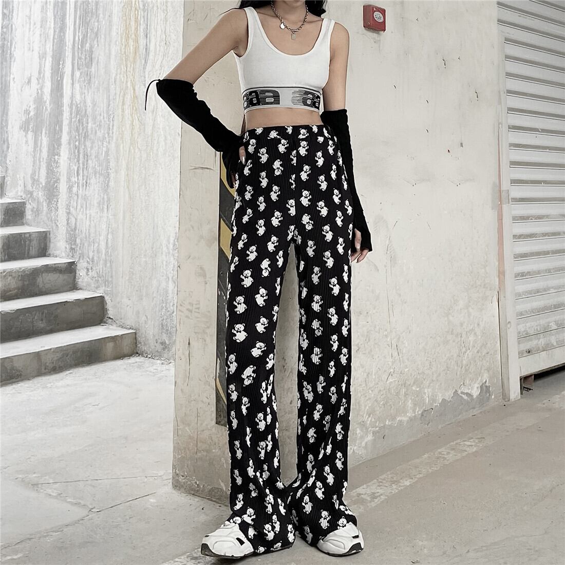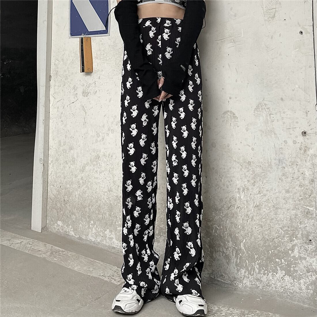 韓国ファッションNEWスタンダードプリント柄カジュアルパンツ ハイウェストウェストルーズ薄手ワイドレッグレディース レトロ ワイドパンツ スタイル ウエスト Studios61832666927 | pLegLad Studios