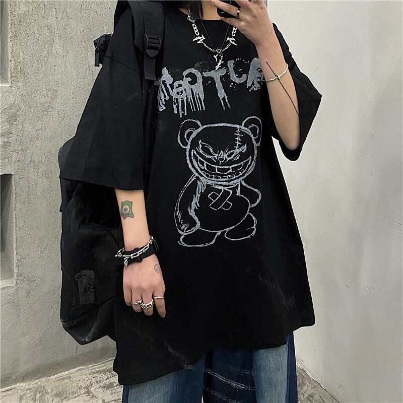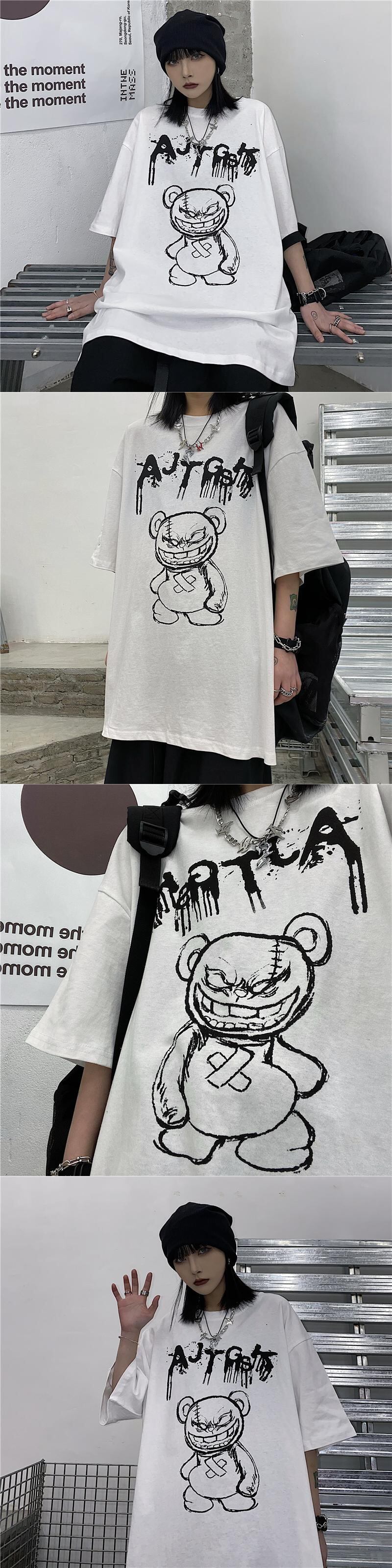 夏服韓国ファッションNEWスタイルダークプリント柄カジュアルルーズラウンドネックTシャツメンズレディース ストリート 原宿 夏物 Oネック Studios1045873941 | pLegLad Studios