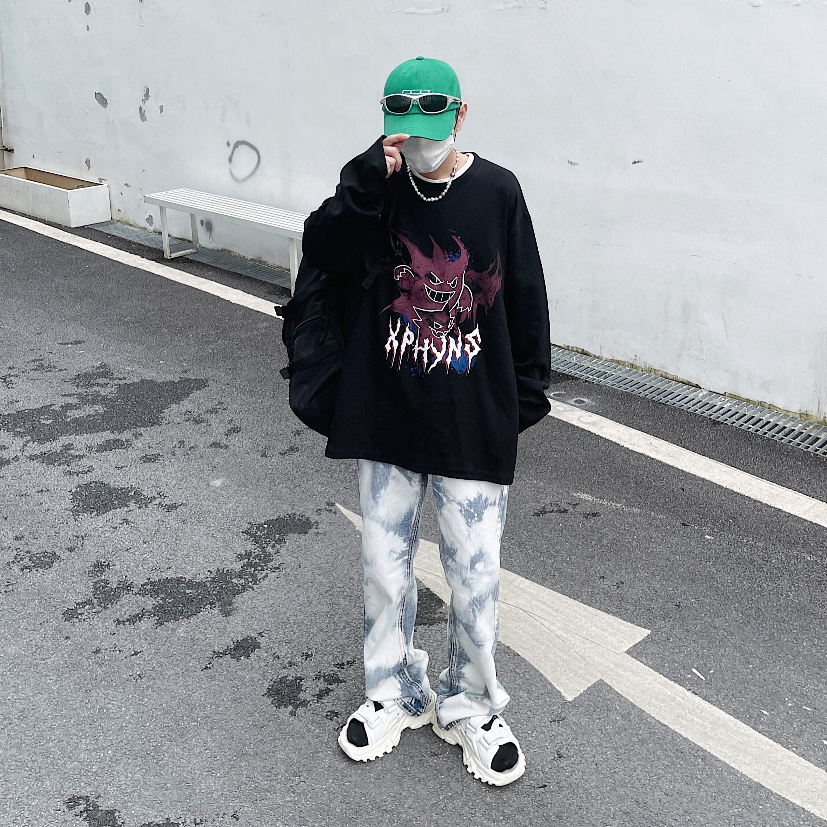 秋物ウィンター韓国ファッションNEWスタイルプリントルーズカジュアルラウンドネックゆったりシャツ Tシャツメンズレディース ロング ストリート 原宿 オータム 冬物 Oネック 長袖 Studios29622242122 | pLegLad Studios