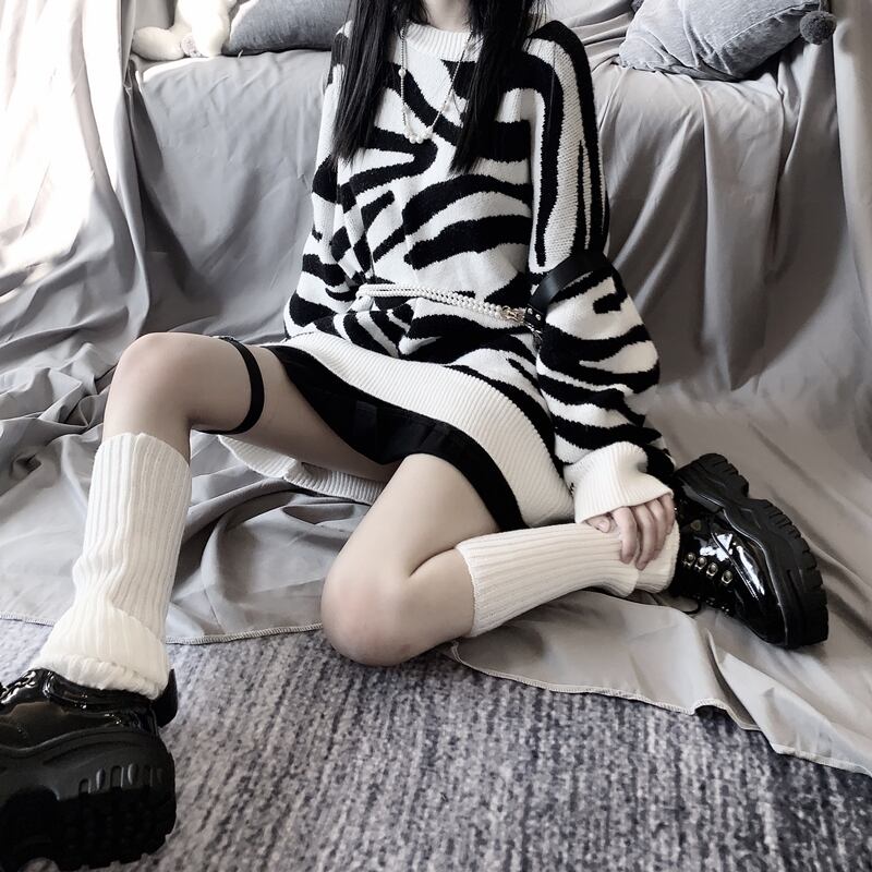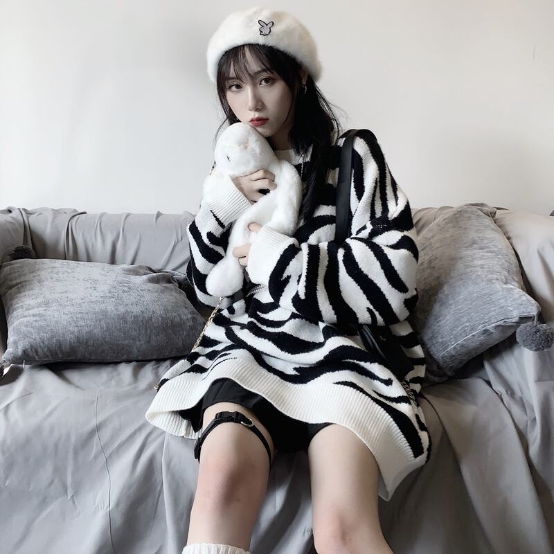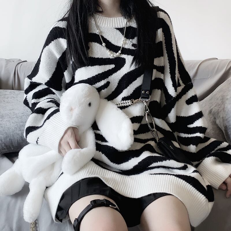 秋物ウィンター韓国ファッションNEWスタンダードスタイルルーズラウンドネックプリント柄セーター レトロ オータム 冬物 Oネック ミドル丈 Studios90389961164 | pLegLad Studios
