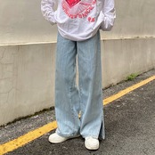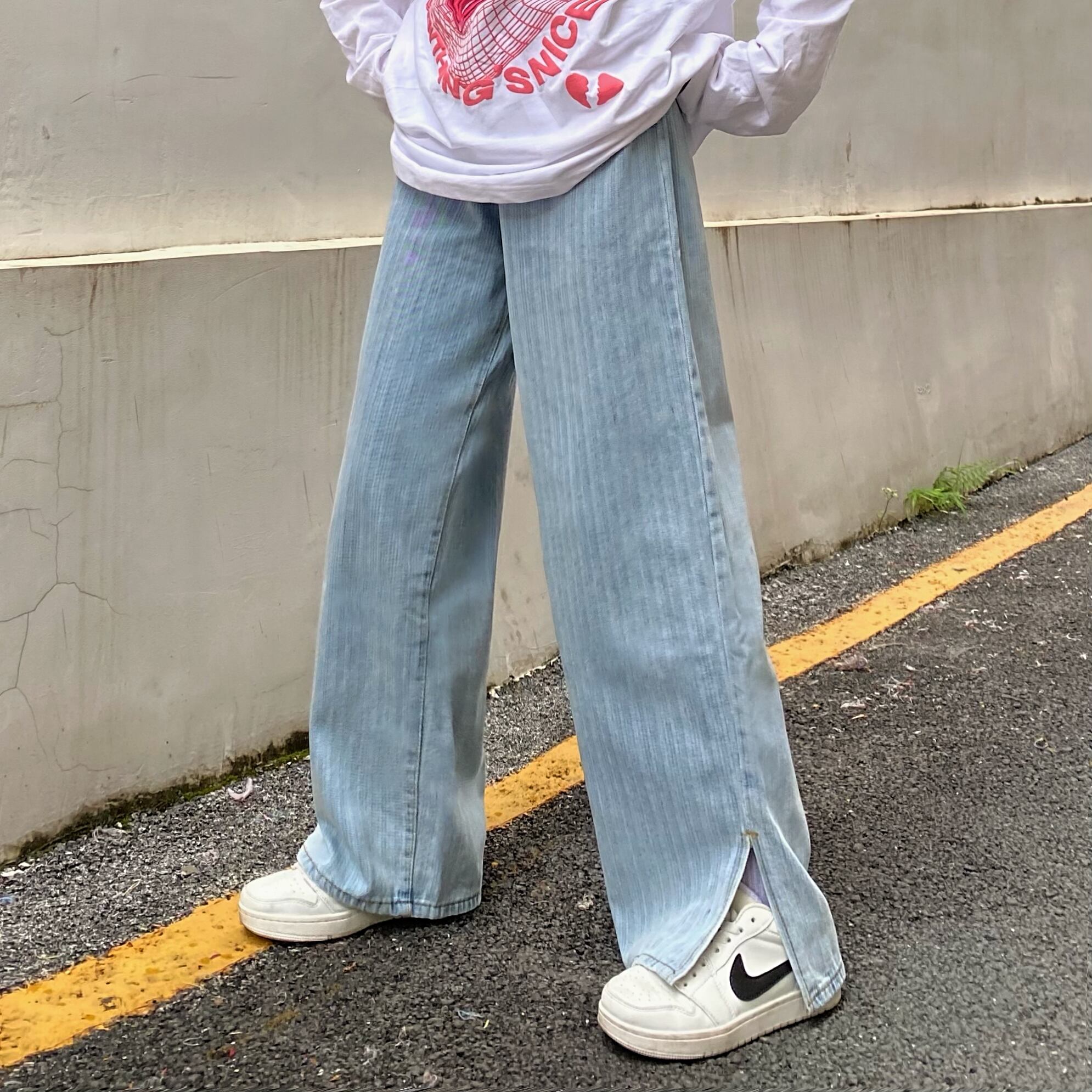 ストライプスリットジーンズ レディース韓国ファッションNEWルーズ薄手ハイウェストウェストワイドレッグ ストリート ワイドパンツ スタイル ウエスト Studios54567368281 | pLegLad Studios