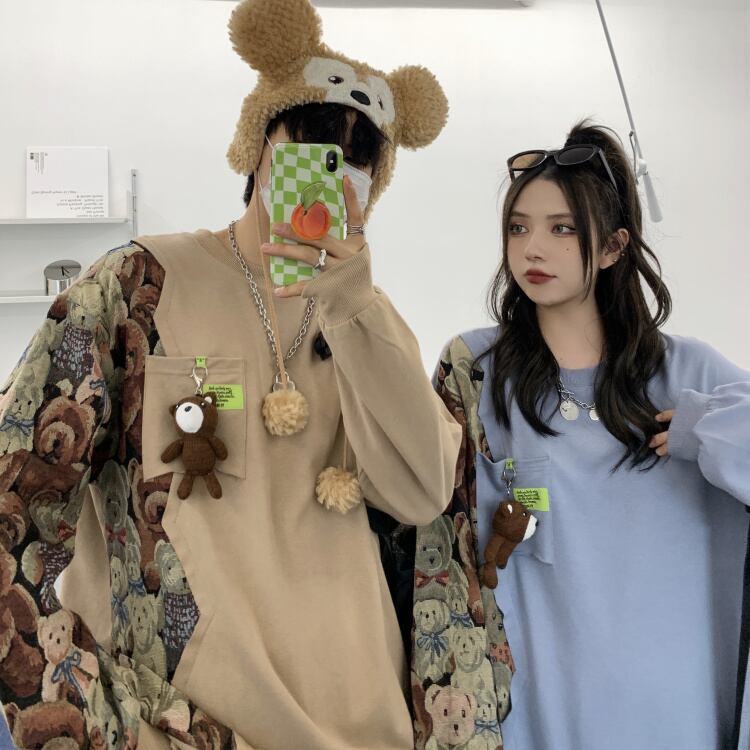 秋物ウィンター韓国ファッションNEWスタイルプリント柄ルーズ薄手ラウンドネックセーター メンズレディース ストリート 原宿 オータム 冬物 Oネック ステッチ Studios70234511484 | pLegLad Studios