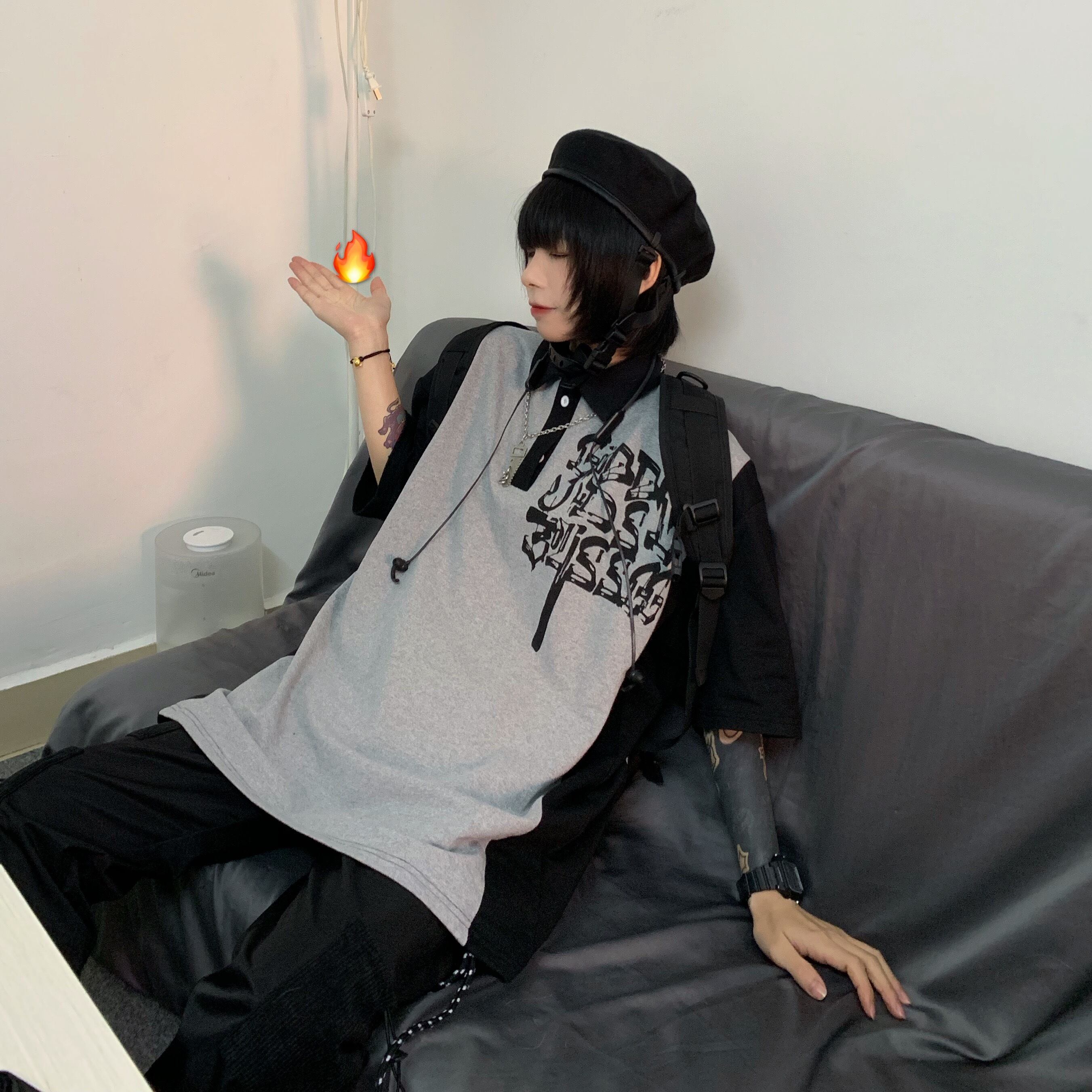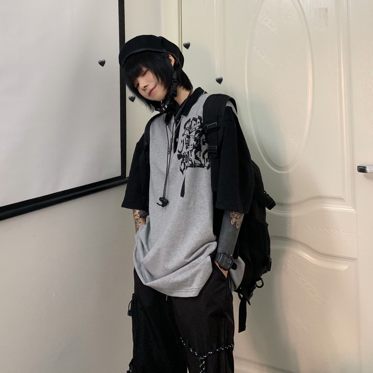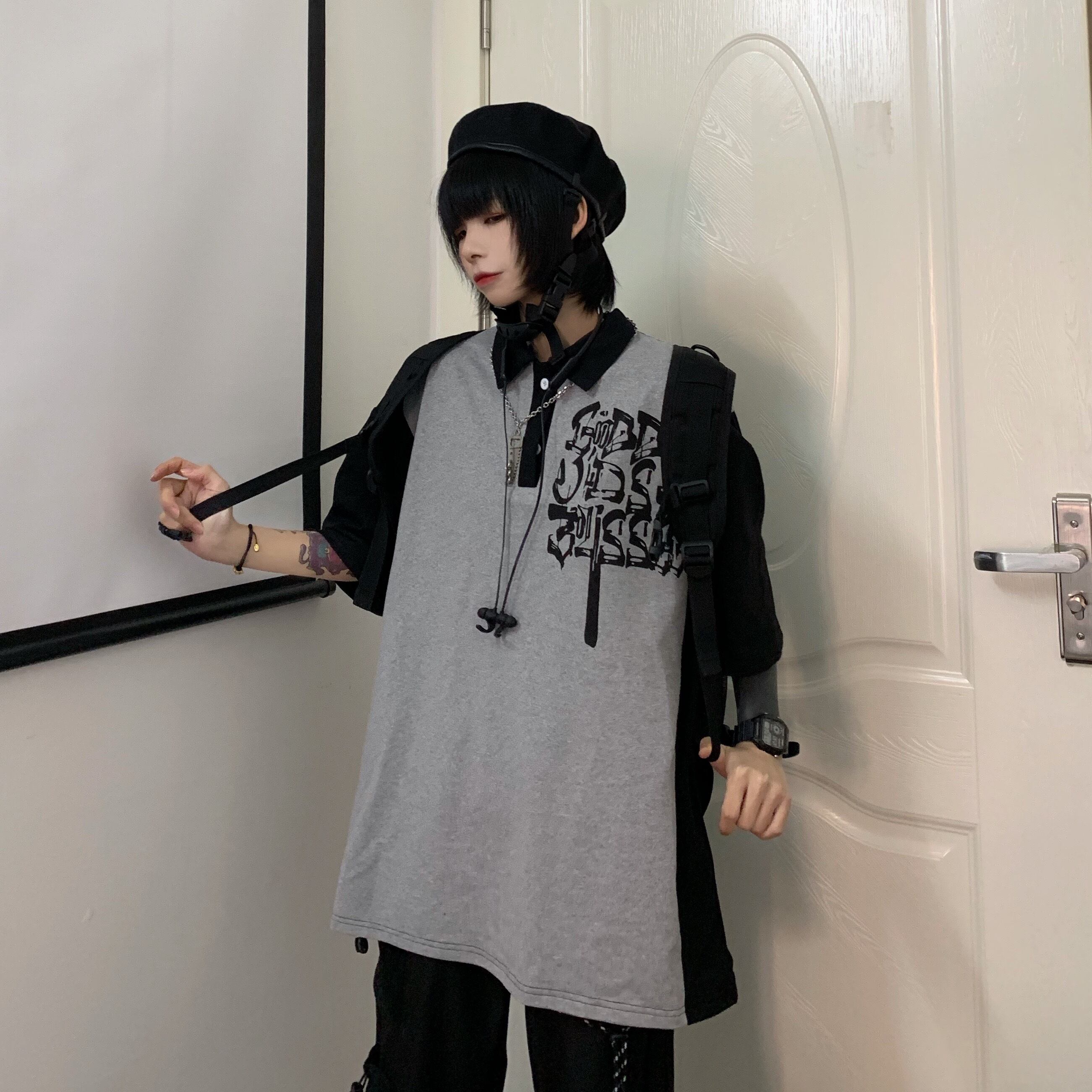 夏服韓国ファッションNEWスタンダードプリント柄カラールーズTシャツメンズレディース レトロ ストリート 夏物 ステッチ スタイル Studios9333121054 | pLegLad Studios