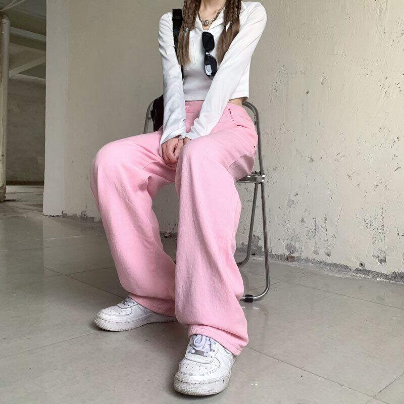 ジーンズ レディース韓国ファッションNEWスタンダードハイウェストウェストルーズ薄手ワイドレッグ ピンク レトロ ストリート ワイドパンツ スタイル ウエスト Studios25628713274 | pLegLad Studios