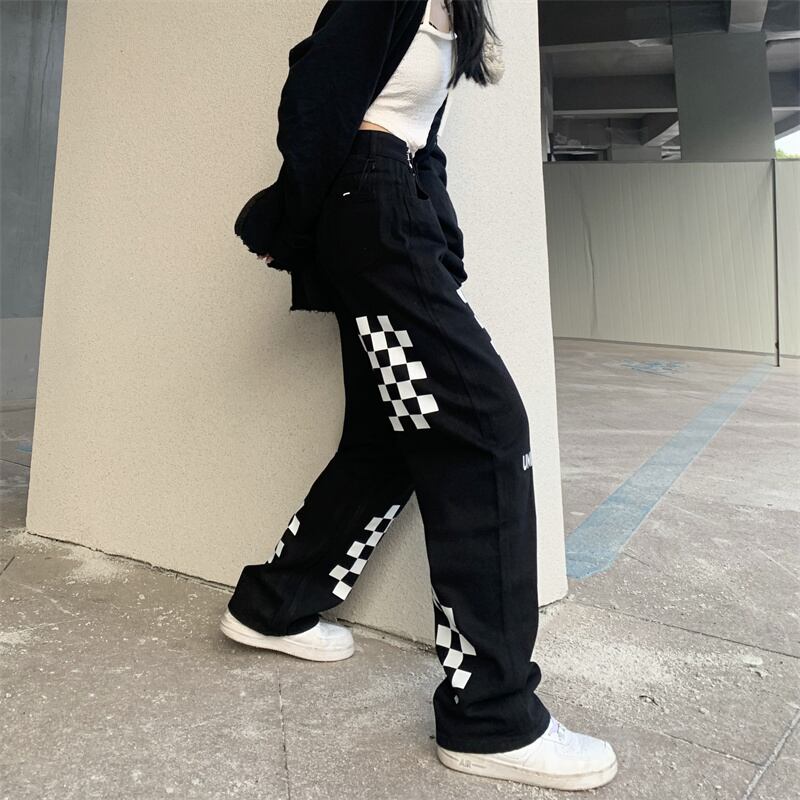 ブラックホワイトジーンズ レディース韓国ファッションNEWルーズ薄手ハイウェストウェストワイドレッグ ストリート ワイドパンツ スタイル ウエスト Studios73120896240 | pLegLad Studios