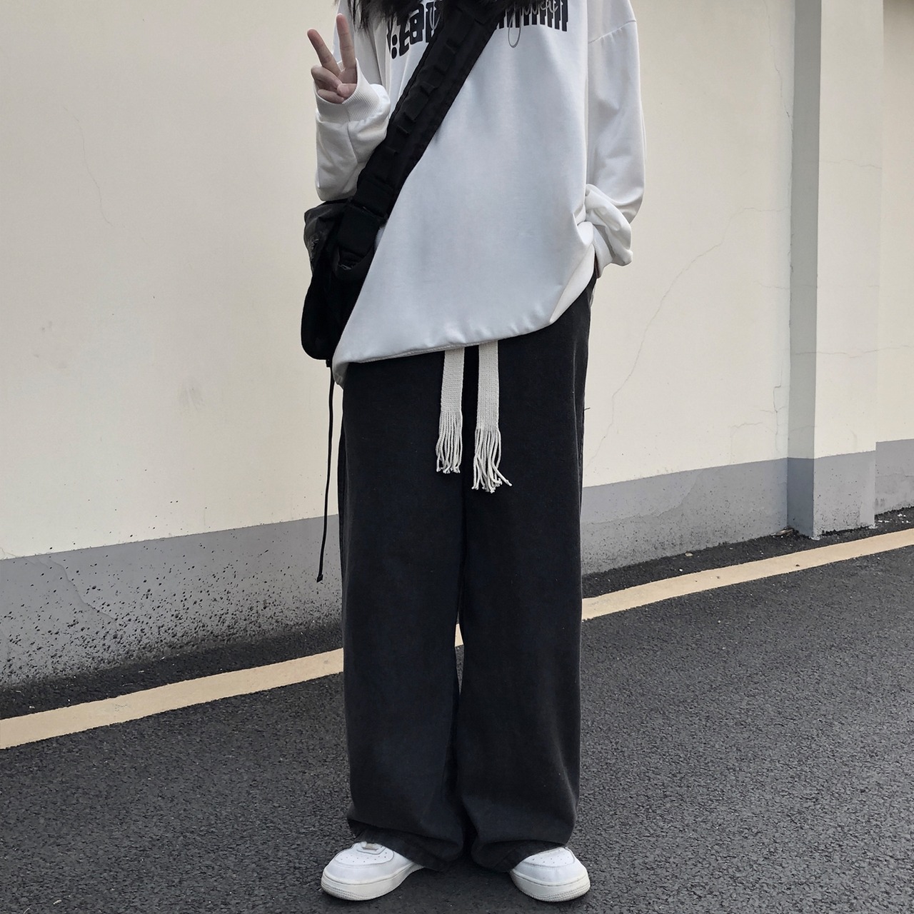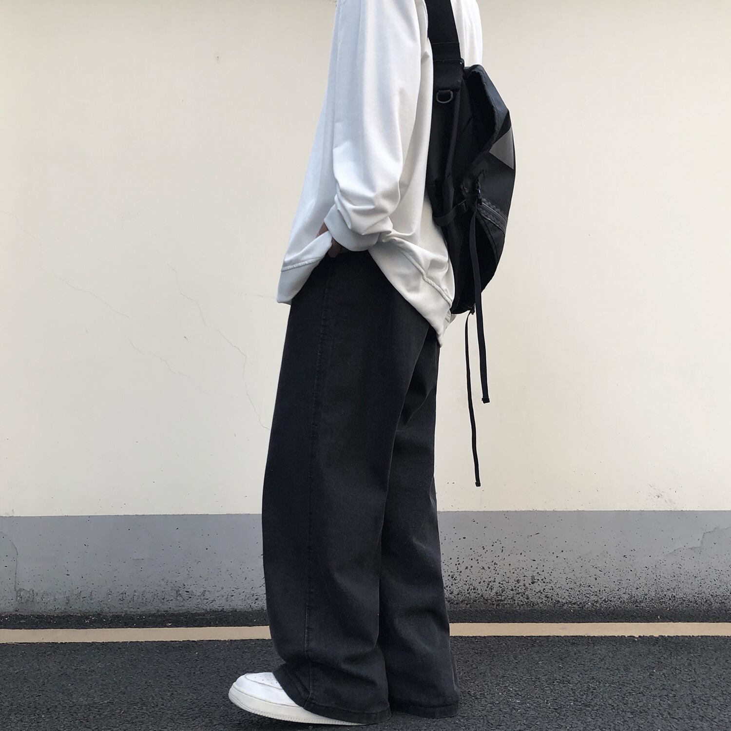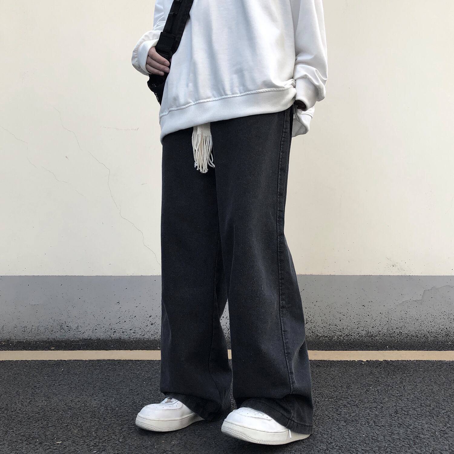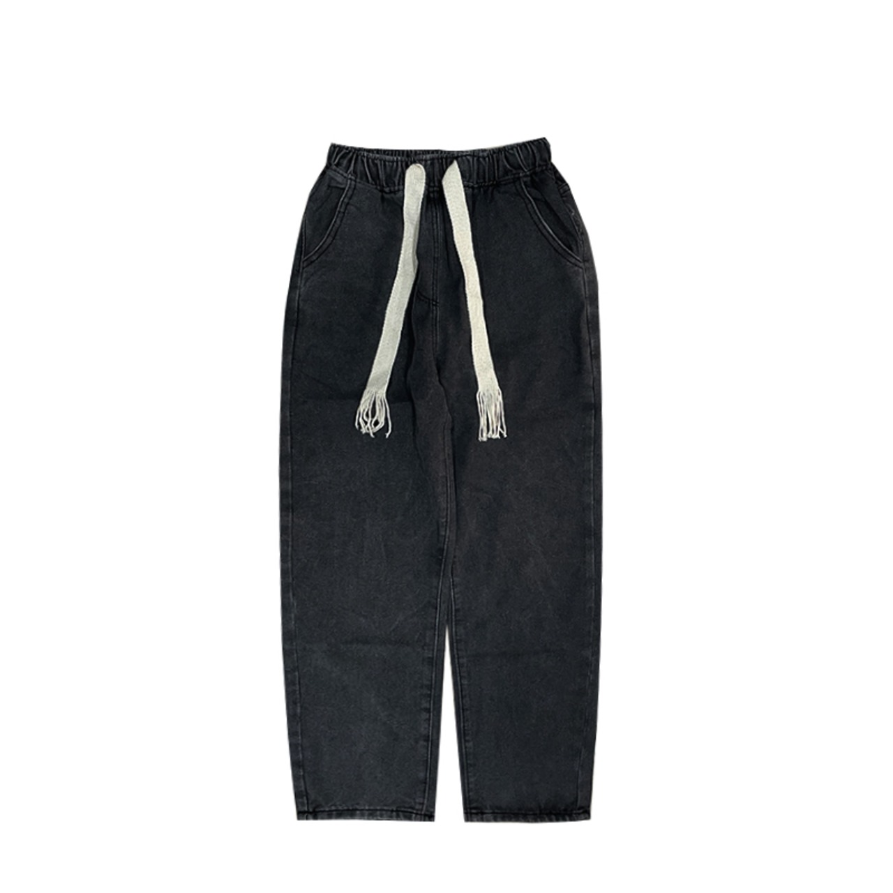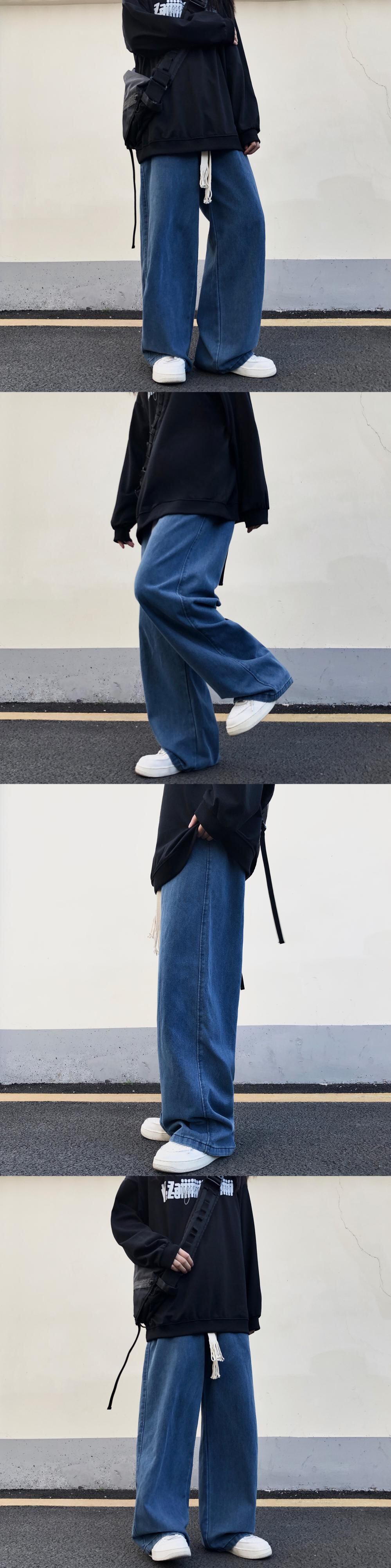 NEWスタンダードソリッド カラーギャザーストレッチウェストルーズ薄手ワイドレッグジーンズ メンズレディース レトロ ストリート エラスティック 伸縮 ワイドパンツ ソリッドカラー ウエスト Studios11602655099 | pLegLad Studios