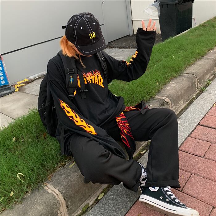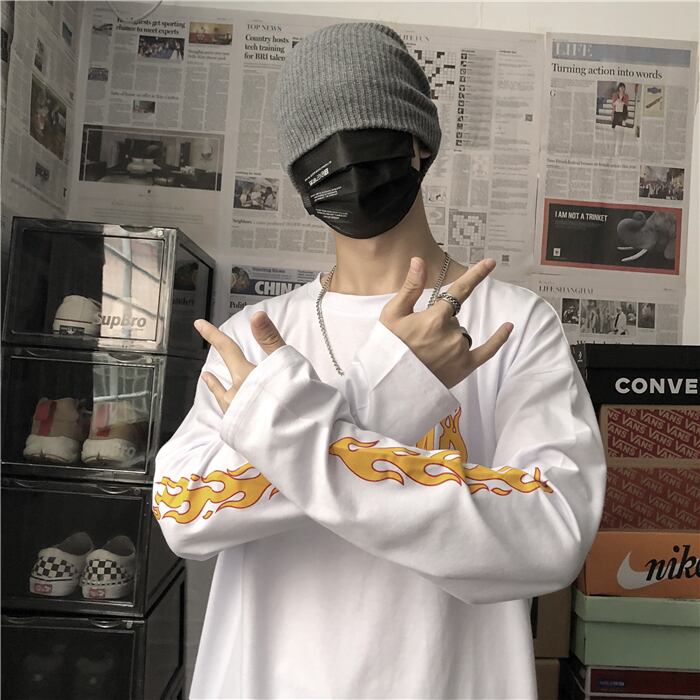 スプリング韓国ファッションNEWスタイルプリント柄ルーズラウンドネックTシャツメンズレディース ロング 原宿 春物 Oネック 長袖 Studios37213244263 | pLegLad Studios