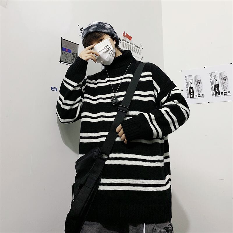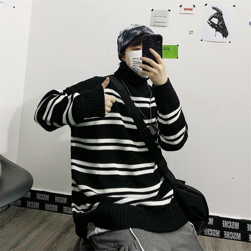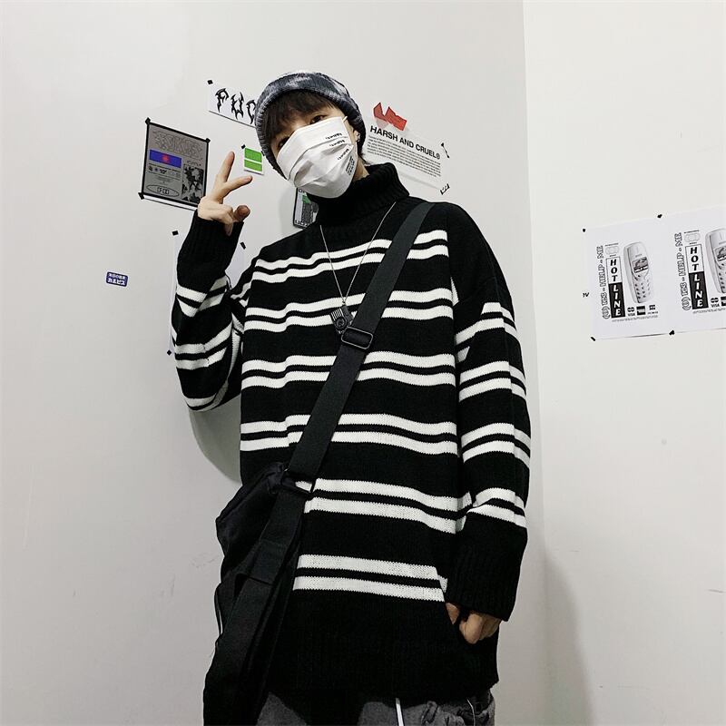 ニットセーター トップス 秋物ウィンター韓国ファッションNEWスタンダードストライプルーズ ロング レトロ オータム 冬物 スタイル 長袖 Studios30853727452 | pLegLad Studios