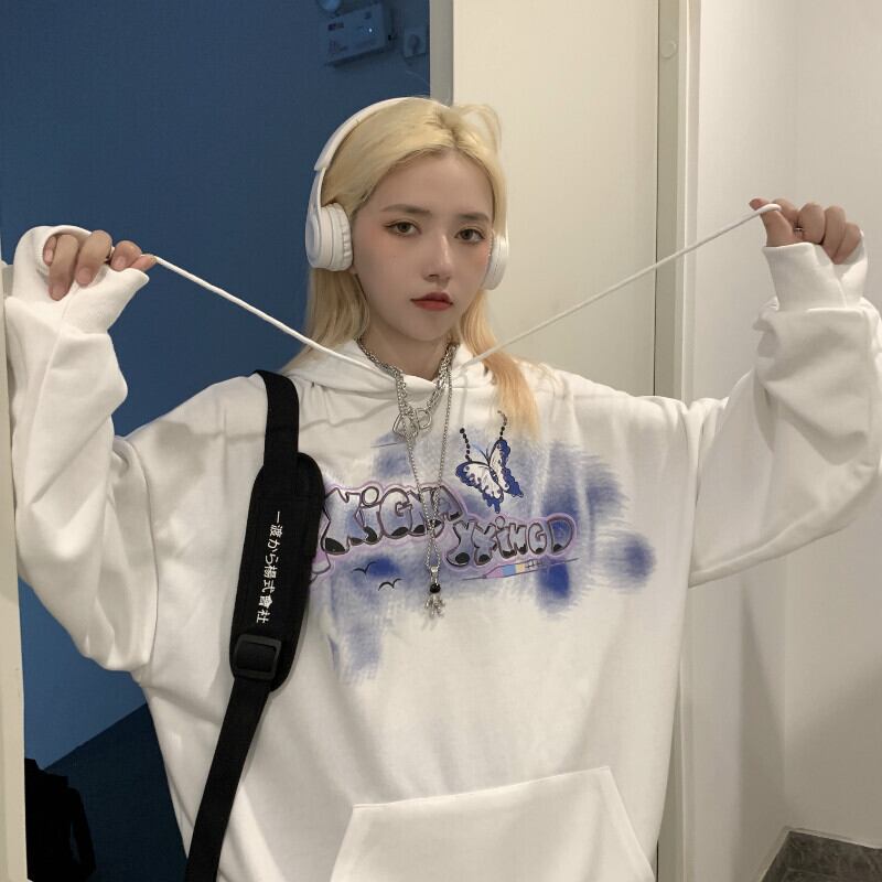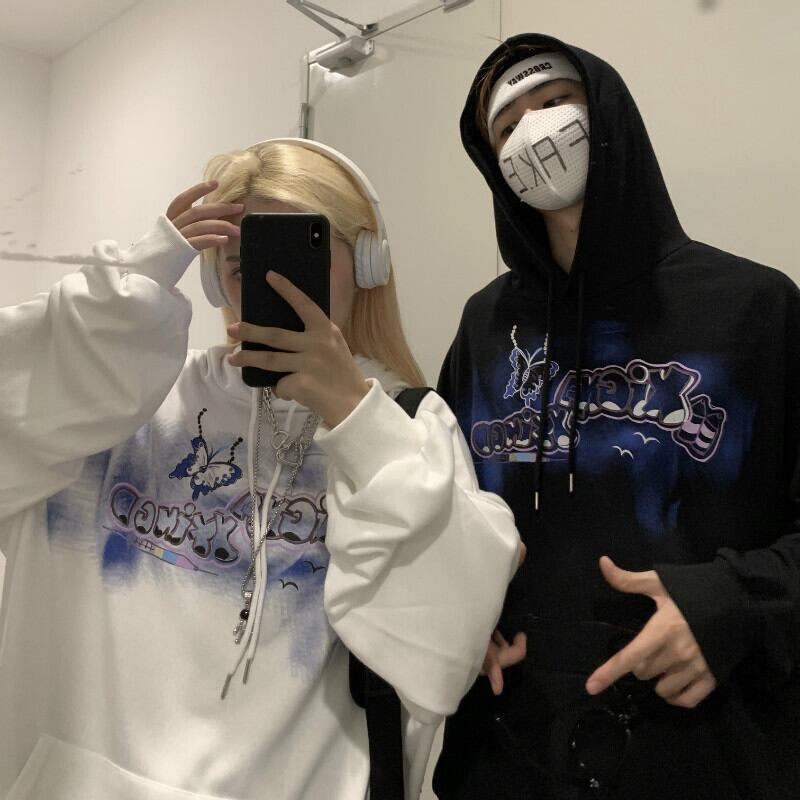 秋物韓国ファッションNEWスタイルダークButterflyデザイン プリント柄ルーズカジュアルフードセーター ジャケット メンズレディース 原宿 オータム Studios5015482703 | pLegLad Studios