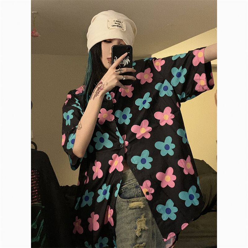 夏服韓国ファッションNEWスタンダードカラープリント柄カジュアルルーズシャツ メンズレディース レトロ ストリート 夏物 スタイル Studios39377642205 | pLegLad Studios
