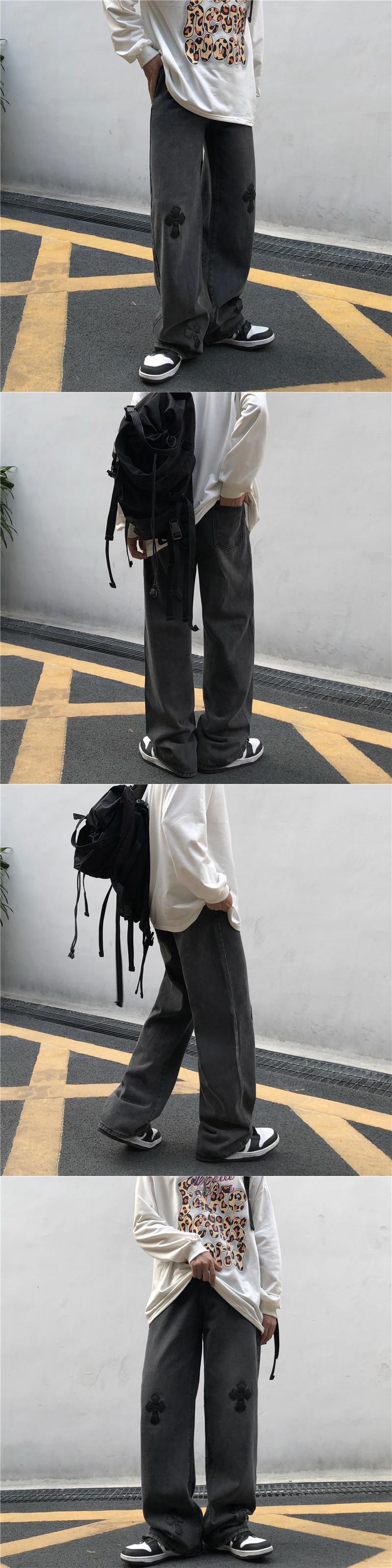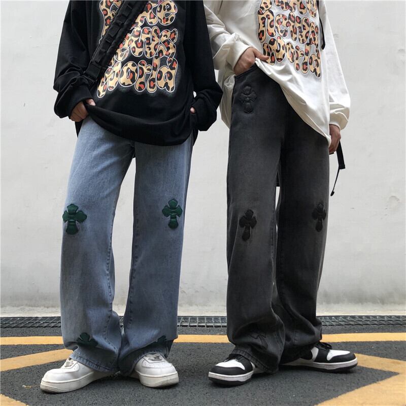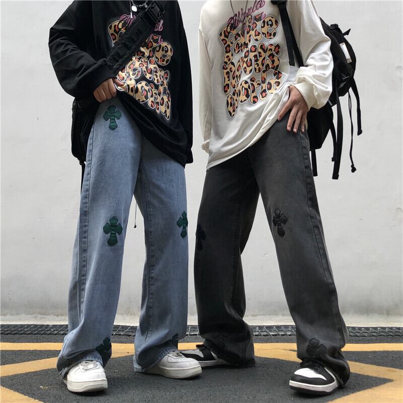 秋物ウィンター韓国ファッションNEWクロス刺繍ルーズ薄手ハイウェストジーンズ メンズレディース ストリート オータム 冬物 スタイル ウエスト Studios77266126209 | pLegLad Studios