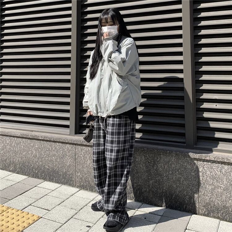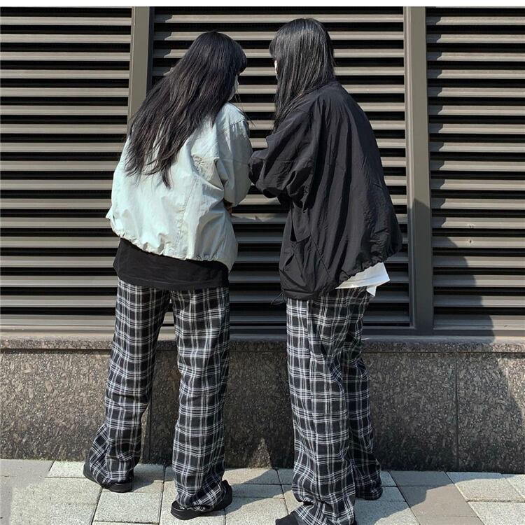 秋物ウィンター韓国ファッションNEWスタンダード格子柄ハイウェストウェストルーズ薄手ワイドレッグカジュアル レトロ ストリート オータム 冬物 ワイドパンツ スタイル ウエスト Studios15870415650 | pLegLad Studios