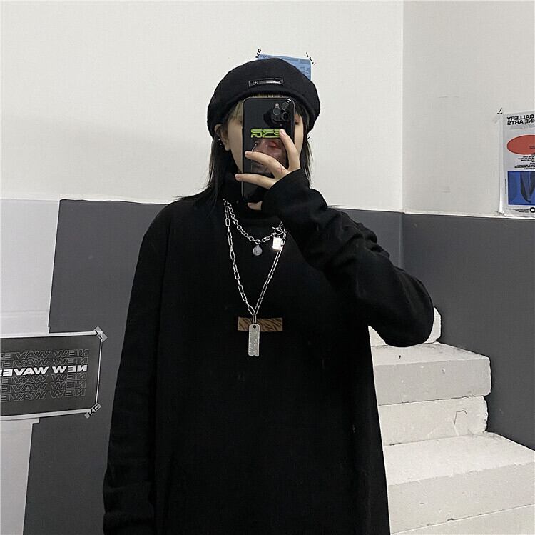 秋物ウィンター韓国ファッションNEWスタンダードソリッド カラー厚みカジュアルルーズゆったりシャツ Tシャツレディース ロング レトロ オータム 冬物 ソリッドカラー スタイル 長袖 Studios35248024998 | pLegLad Studios