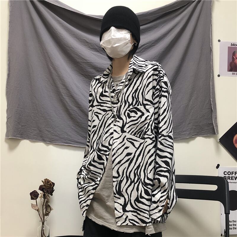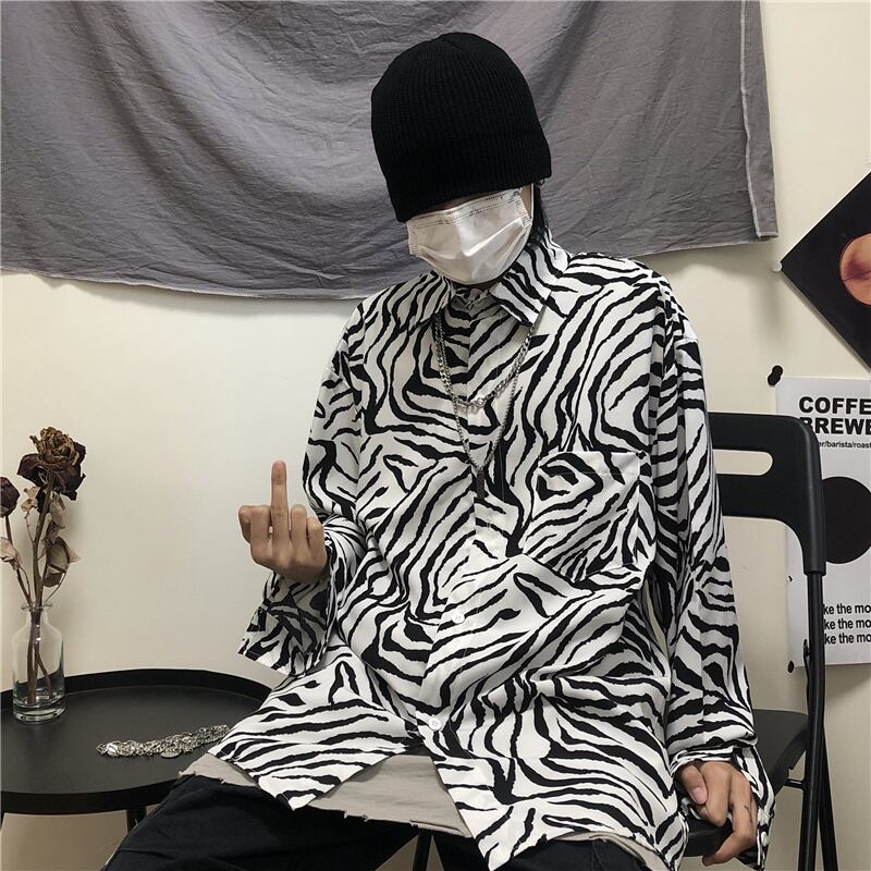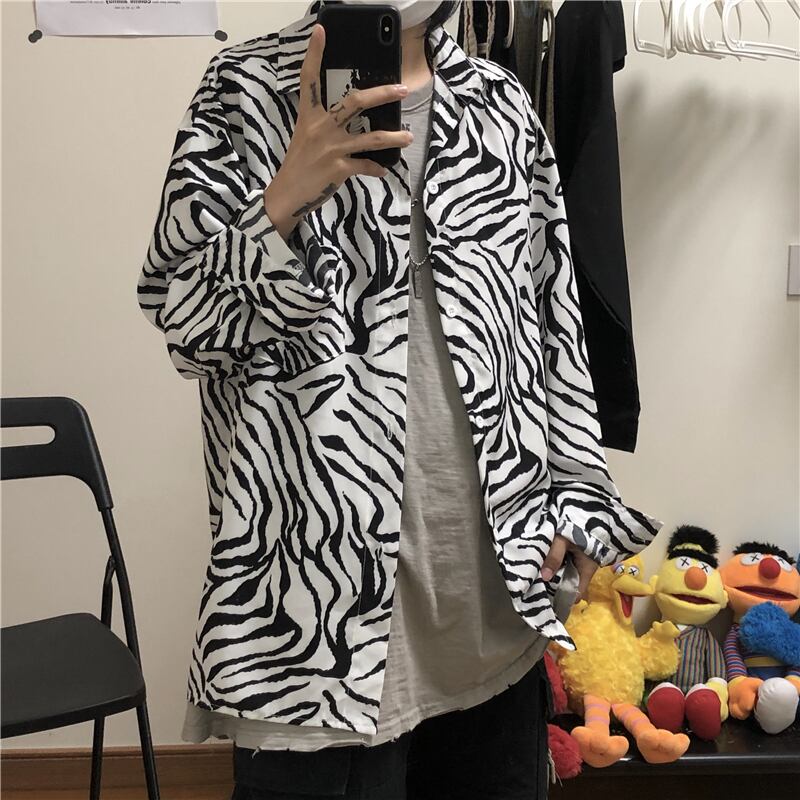 スプリング韓国ファッションNEWスタイルルーズスタンダードブラックホワイトパターンシャツ トップス メンズレディース ロング レトロ ストリート 原宿 春物 長袖 Studios79802198246 | pLegLad Studios