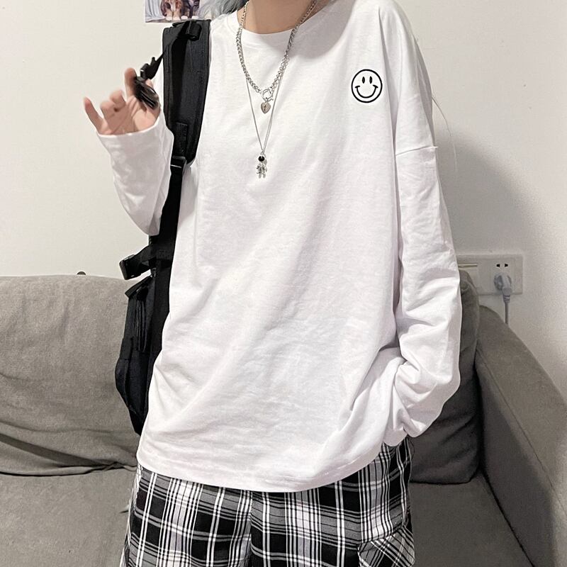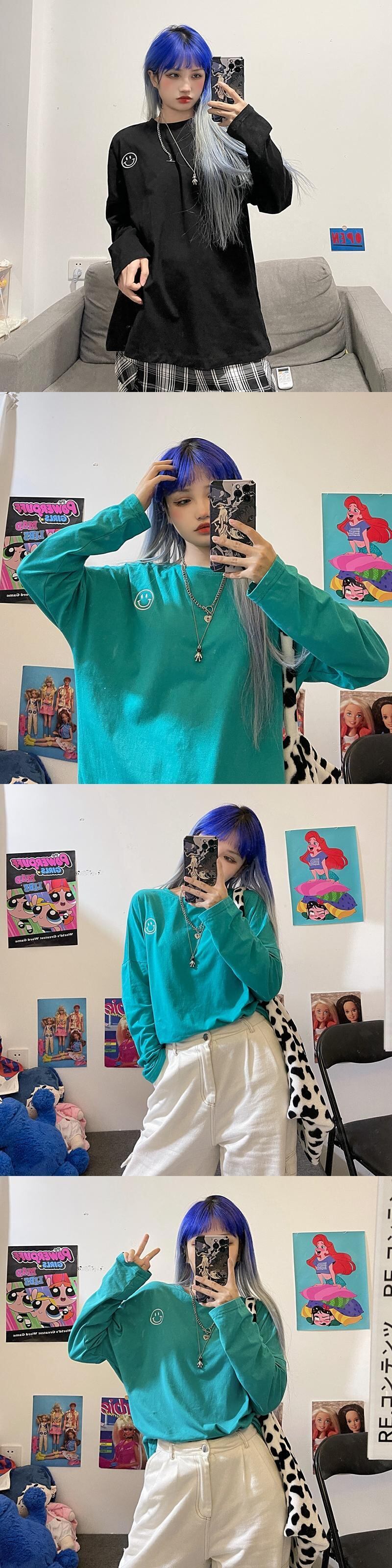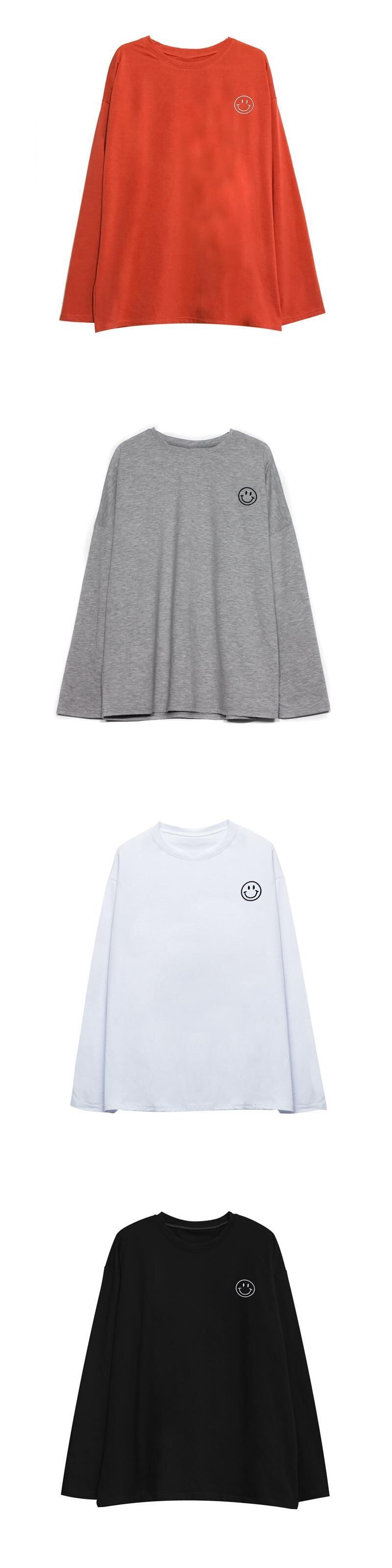 ゆったりシャツ トップス レディース秋物韓国ファッションNEW刺繍ルーズラウンドネックTシャツ ロング オータム Oネック スタイル 長袖 Studios46083172200 | pLegLad Studios