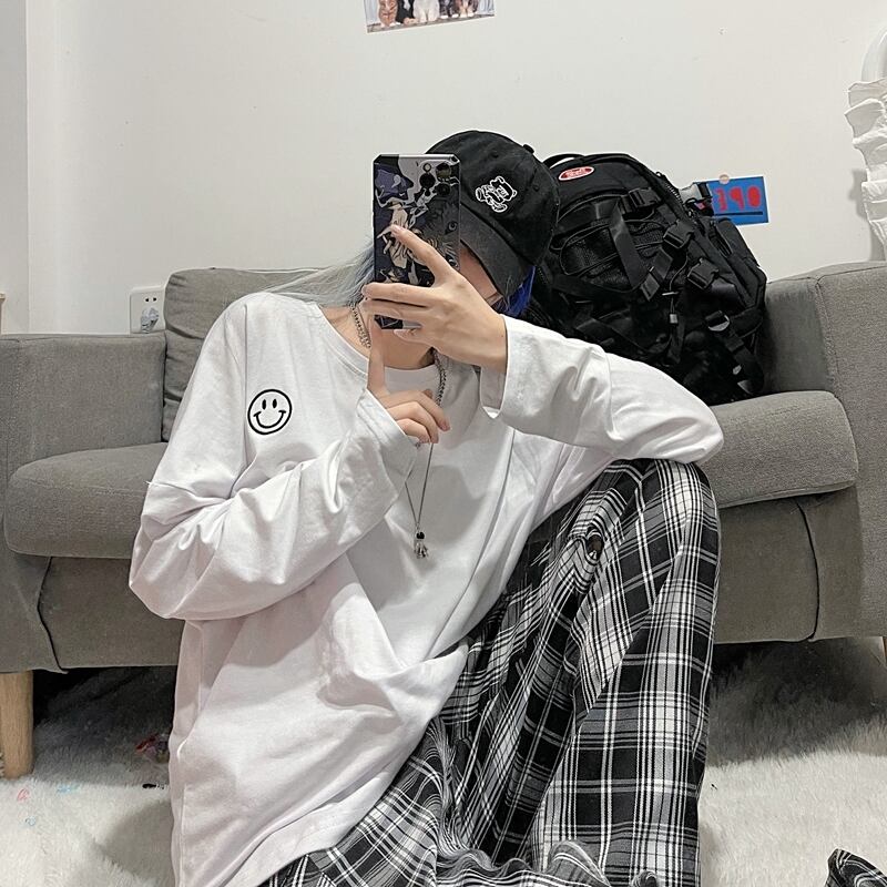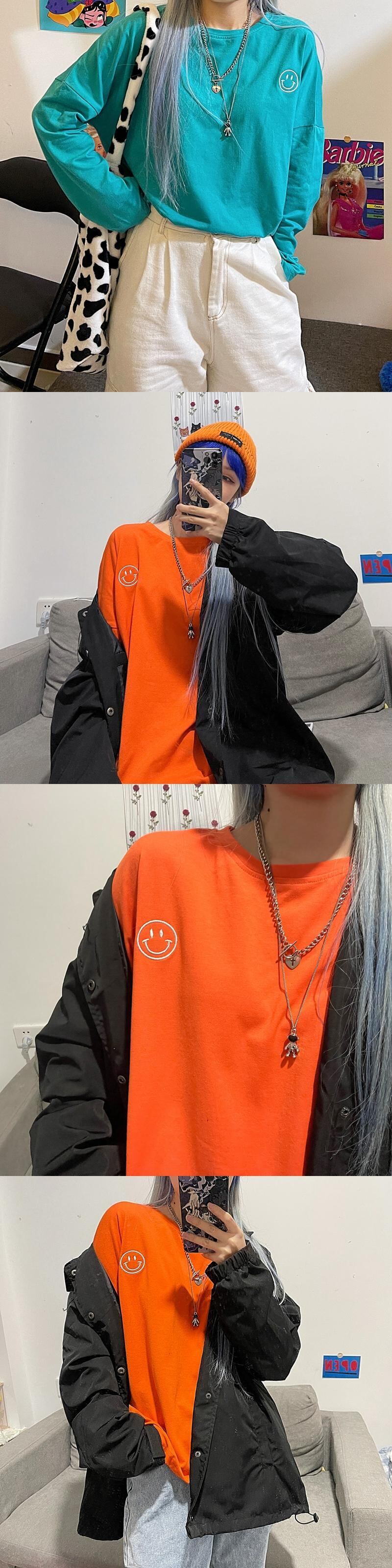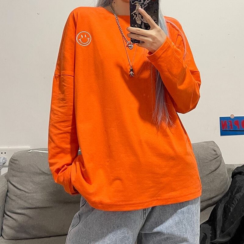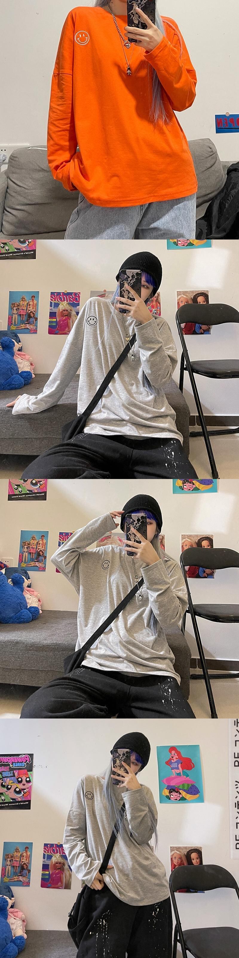 ゆったりシャツ トップス レディース秋物韓国ファッションNEW刺繍ルーズラウンドネックTシャツ ロング オータム Oネック スタイル 長袖 Studios46083172200 | pLegLad Studios