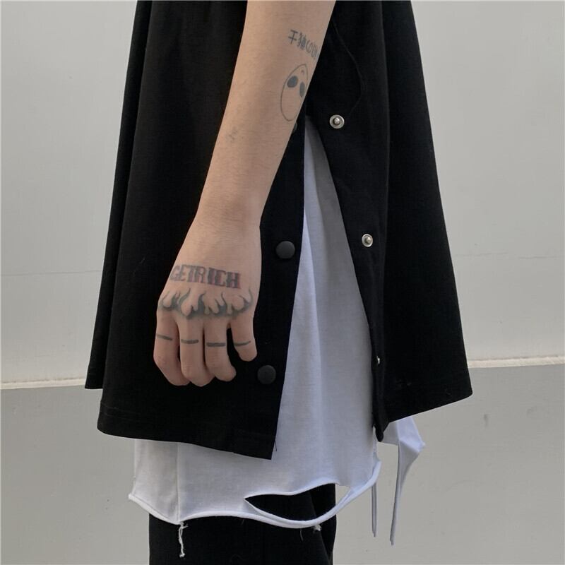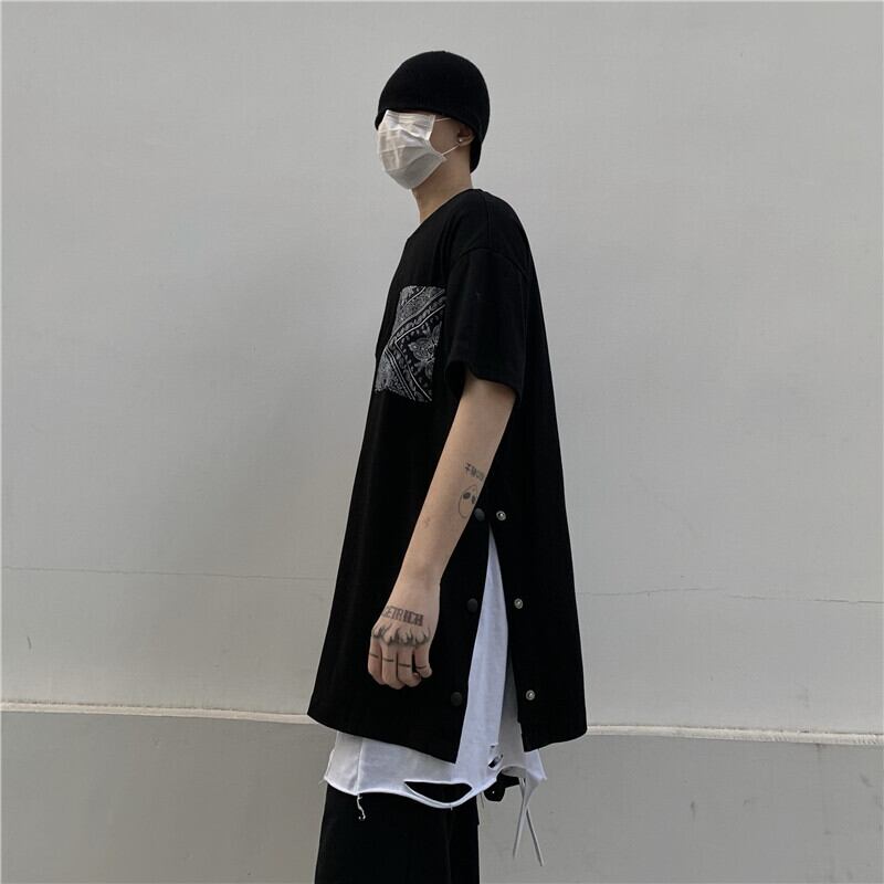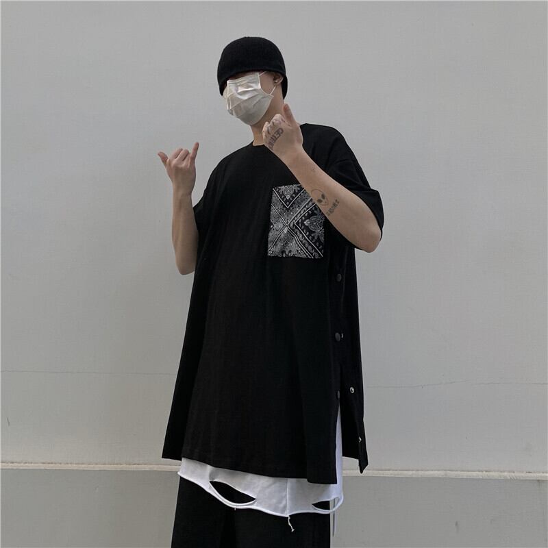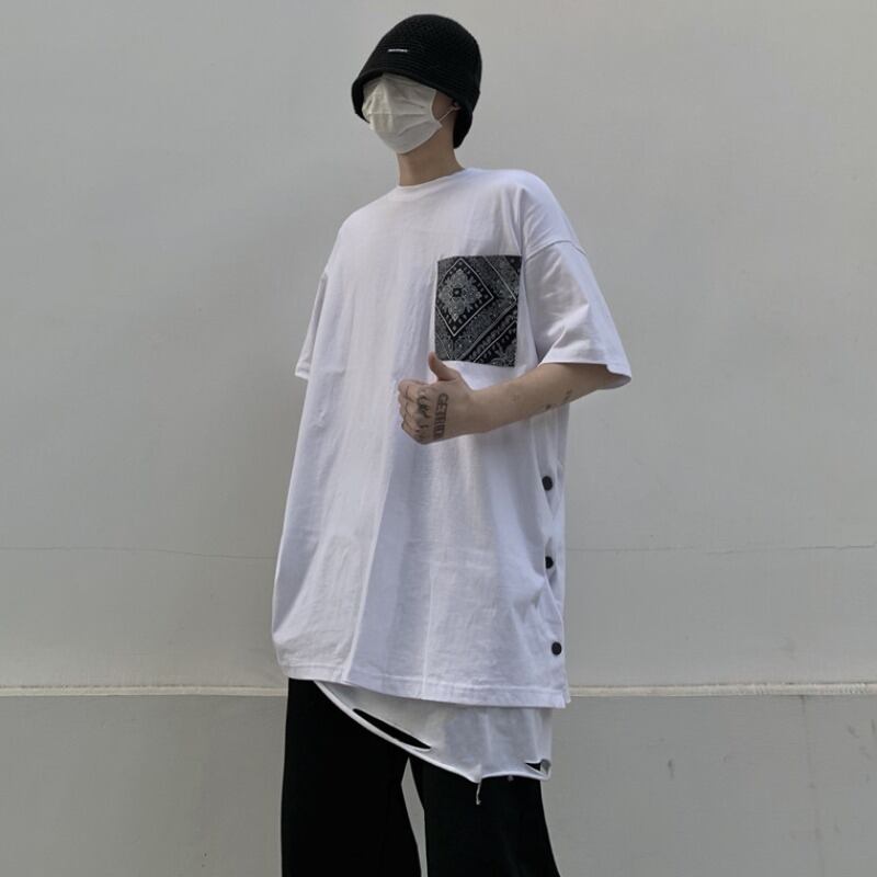夏服韓国ファッションNEWスタイルスタンダードFlowerデザイン ポケットルーズサイドスリットカジュアルTシャツメンズレディース レトロ ストリート 原宿 夏物 フラワーデザイン Studios63333558276 | pLegLad Studios