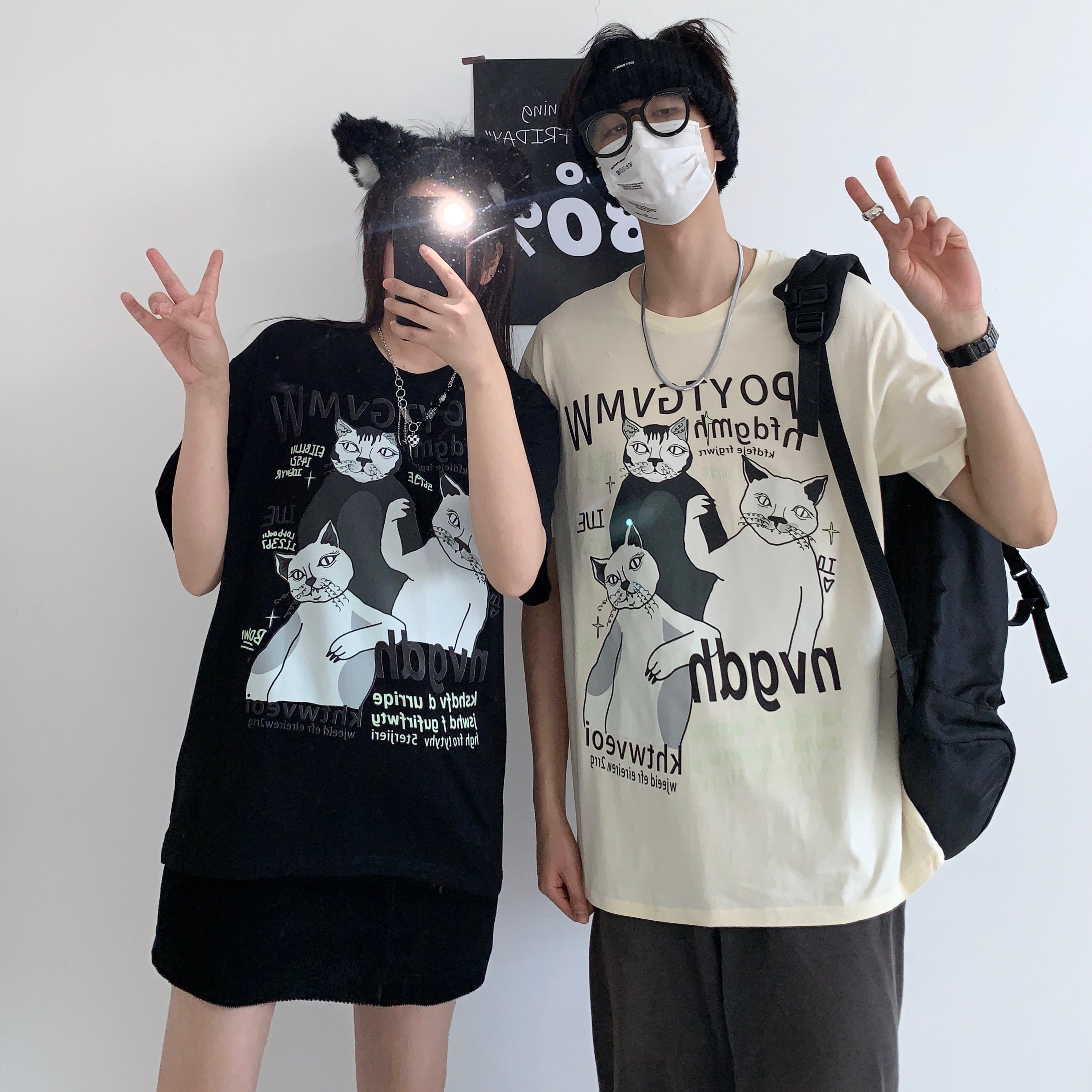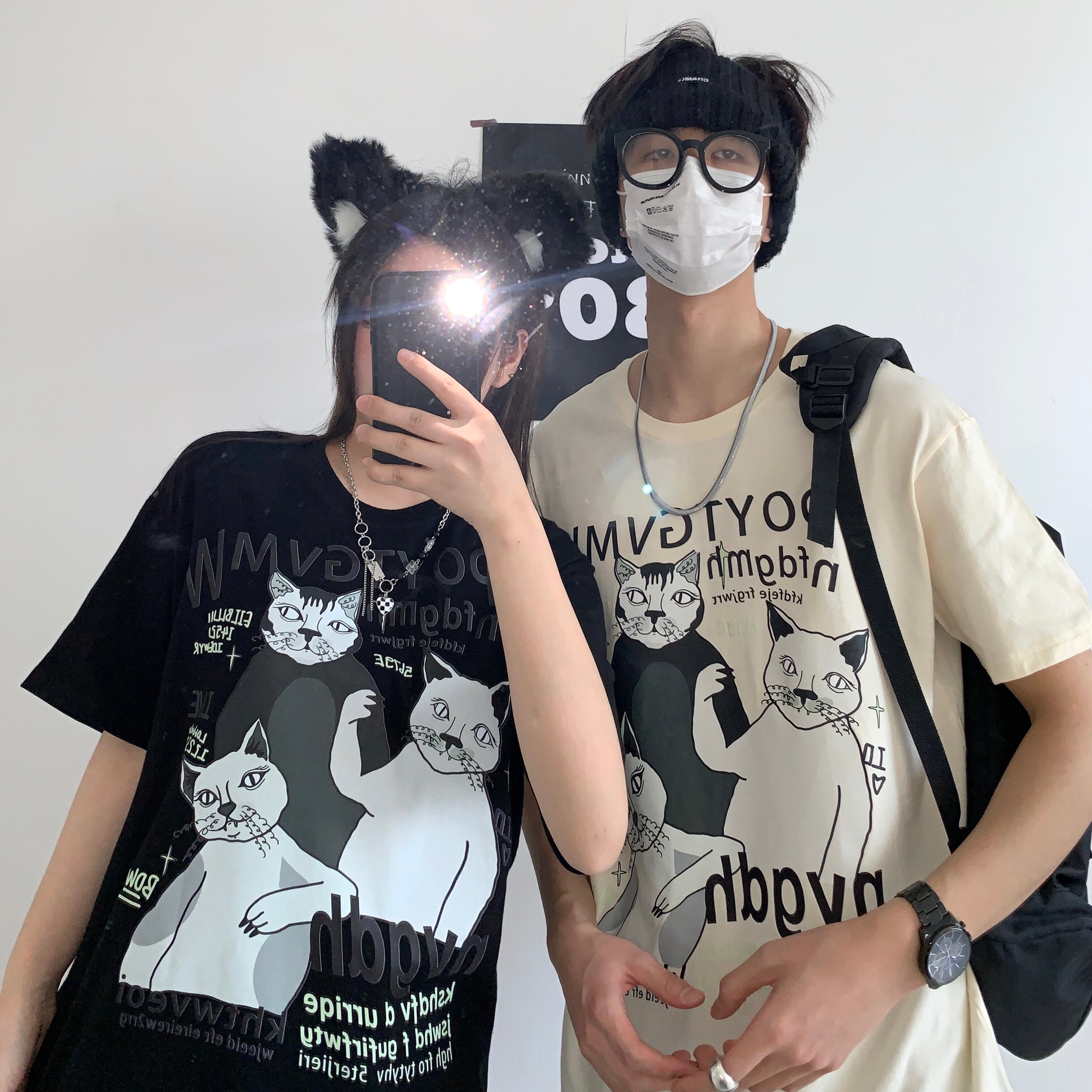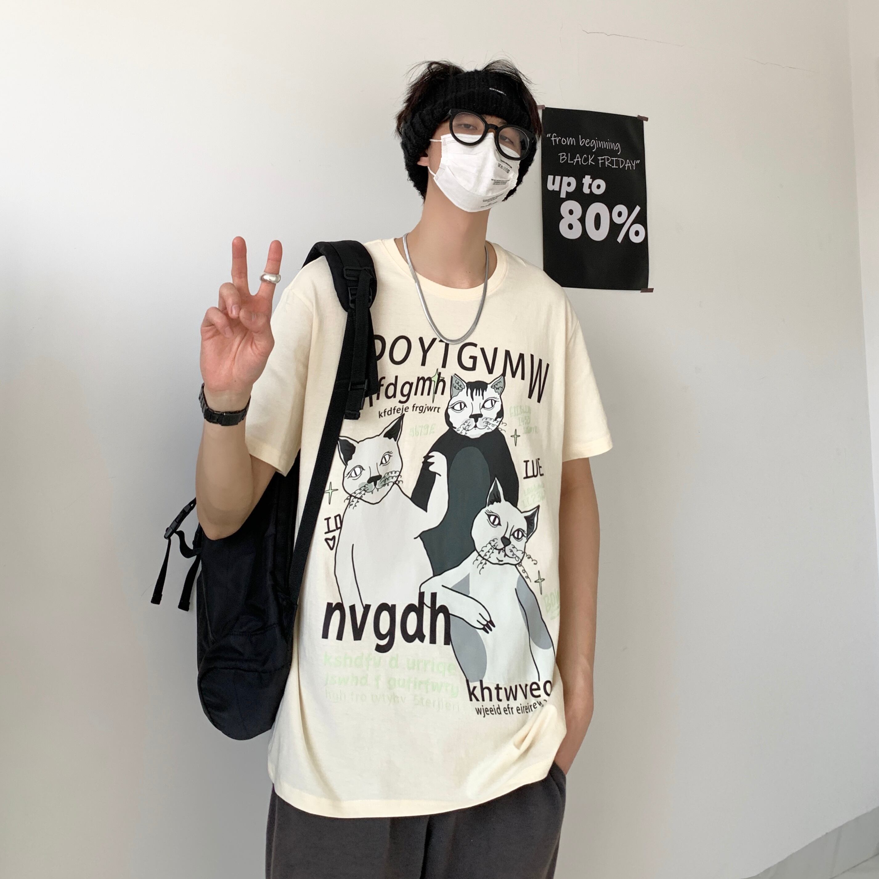 夏服韓国ファッションNEWスタイルスタンダードプリント柄ルーズカジュアルラウンドネックTシャツメンズレディース レトロ ストリート 原宿 夏物 Oネック Studios74075946341 | pLegLad Studios