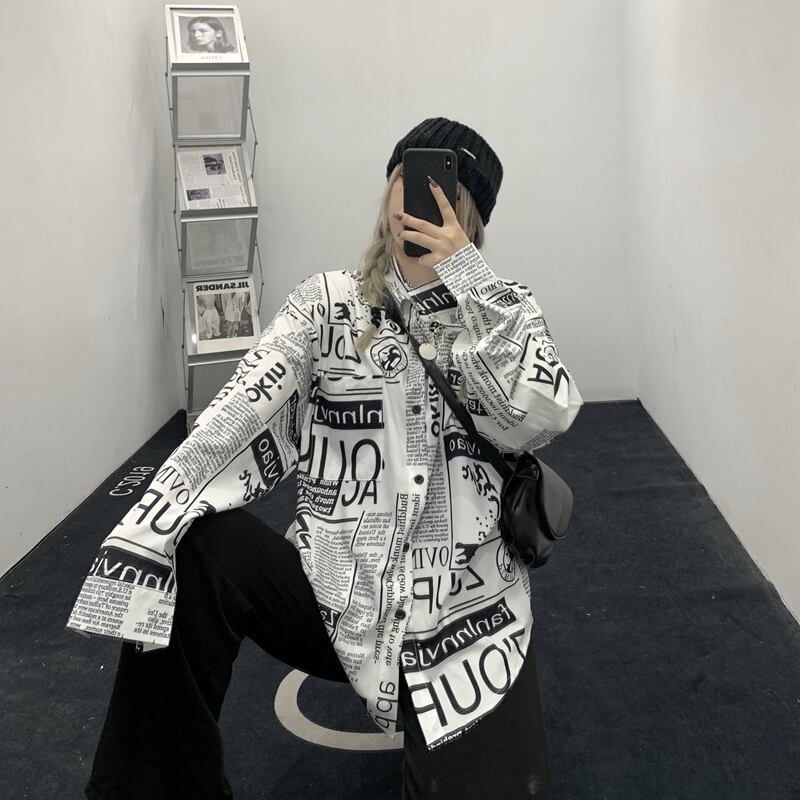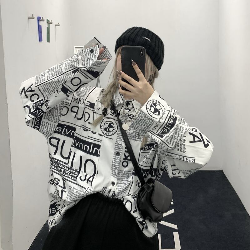 スプリング韓国ファッションNEWスタイルスタンダードプリントカジュアルルーズシャツ レディース ロング レトロ 原宿 春物 長袖 Studios53374662247 | pLegLad Studios
