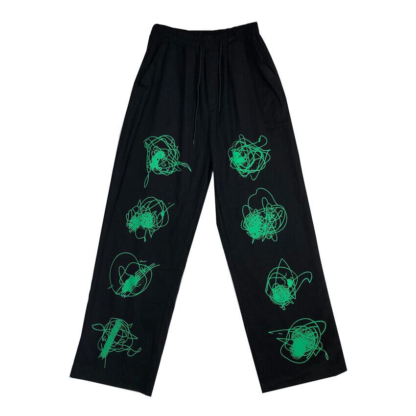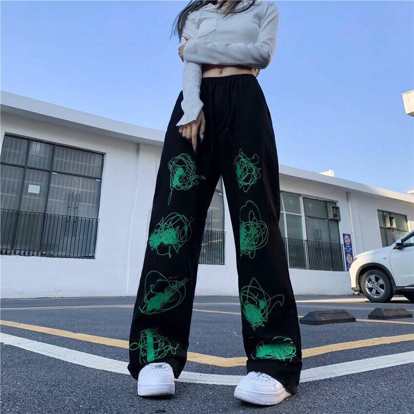 韓国ファッションNEWスタンダードグリーンプリント柄ストレッチウェストルーズパンツ カジュアルレディース レトロ ストリート エラスティック 伸縮 スタイル ウエスト Studios29936042416 | pLegLad Studios