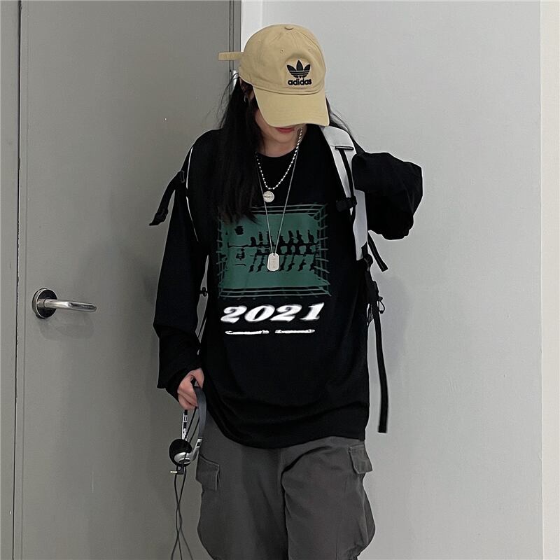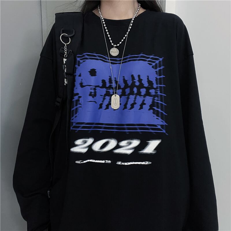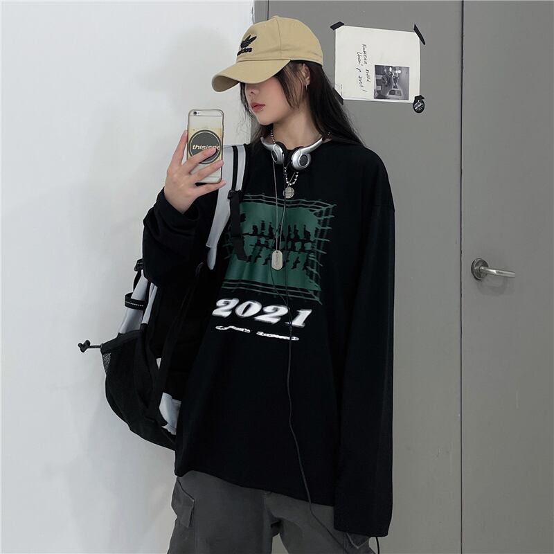 秋物韓国ファッションNEWスタイルダークスタンダードプリントカジュアルルーズTシャツトップス ロング レトロ 原宿 オータム 長袖 Studios74738736459 | pLegLad Studios