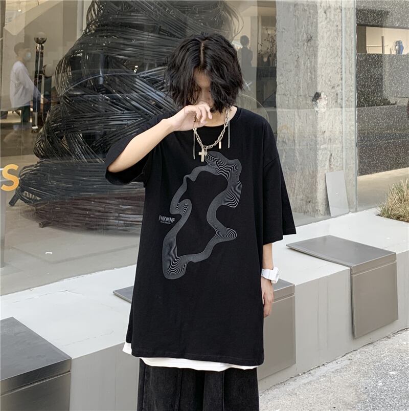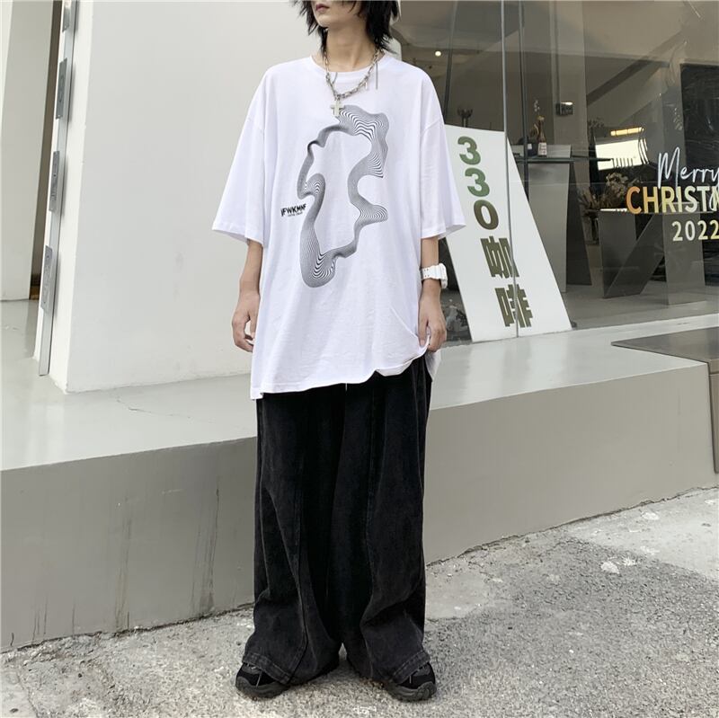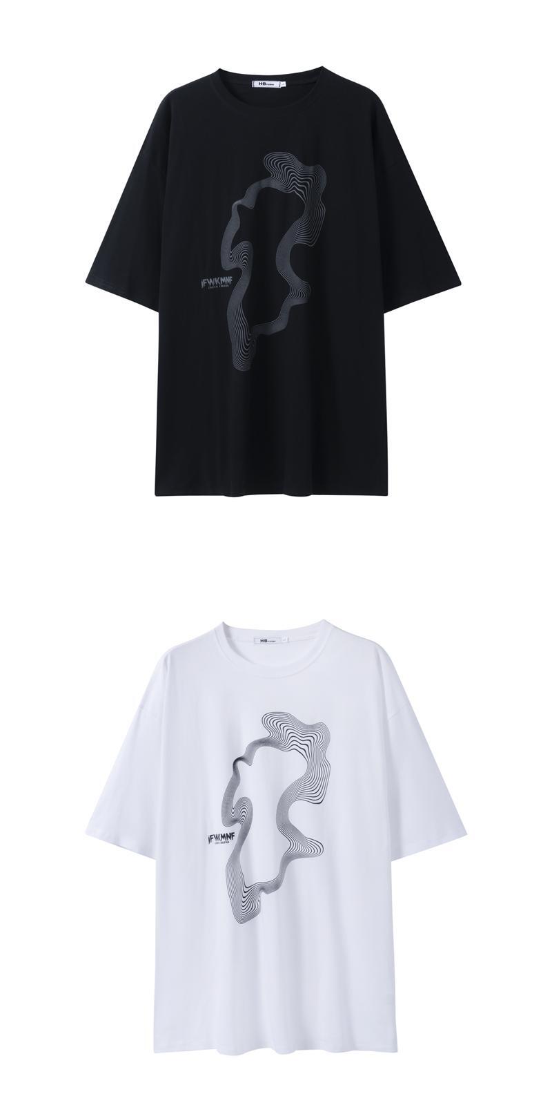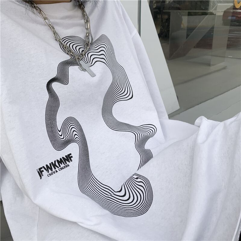 夏服韓国ファッションNEWラインプリントカジュアルルーズラウンドネックTシャツメンズレディース ストリート 夏物 Oネック スタイル Studios51827851599 | pLegLad Studios