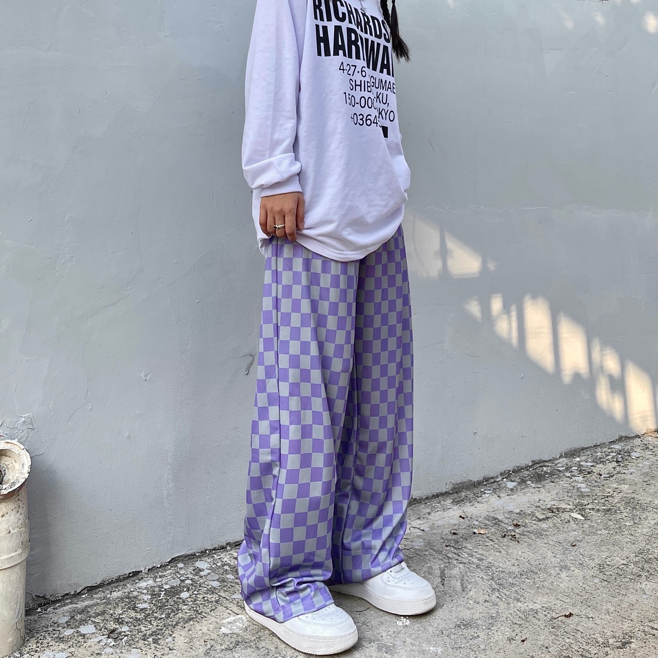 カジュアルパンツ 秋物韓国ファッションNEW格子柄ルーズ薄手ハイウェストウェストワイドレッグ オータム ワイドパンツ スタイル ウエスト Studios98921633648 | pLegLad Studios