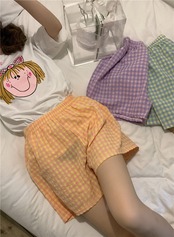 夏服韓国ファッション格子柄カジュアルショーツ ストレッチウェストルーズ薄手パンツ レディース エラスティック 伸縮 大人ガーリー スウィート キュート 夏物 ウエスト Studios62410251657 | pLegLad Studios
