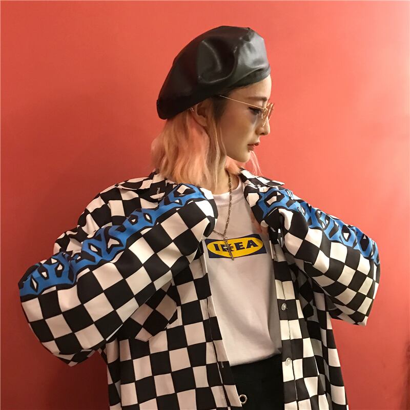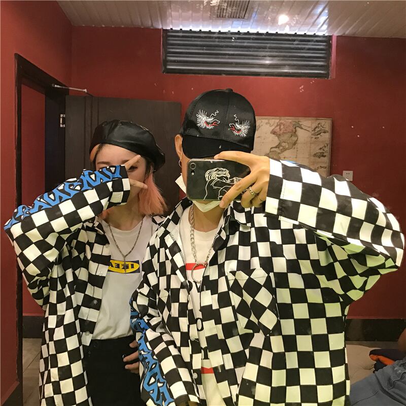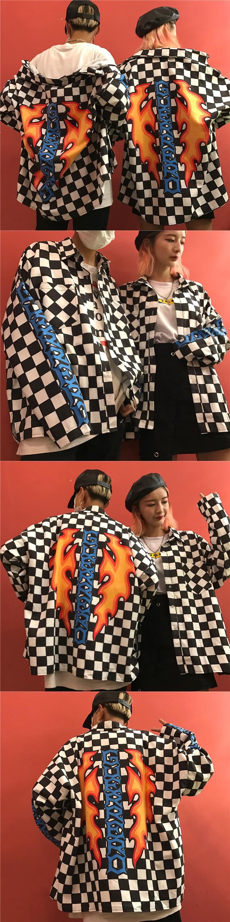 秋物韓国ファッションNEWブラックホワイト格子柄ルーズカジュアルシャツメンズレディース ロング ストリート オータム スタイル 長袖 Studios52679934641 | pLegLad Studios