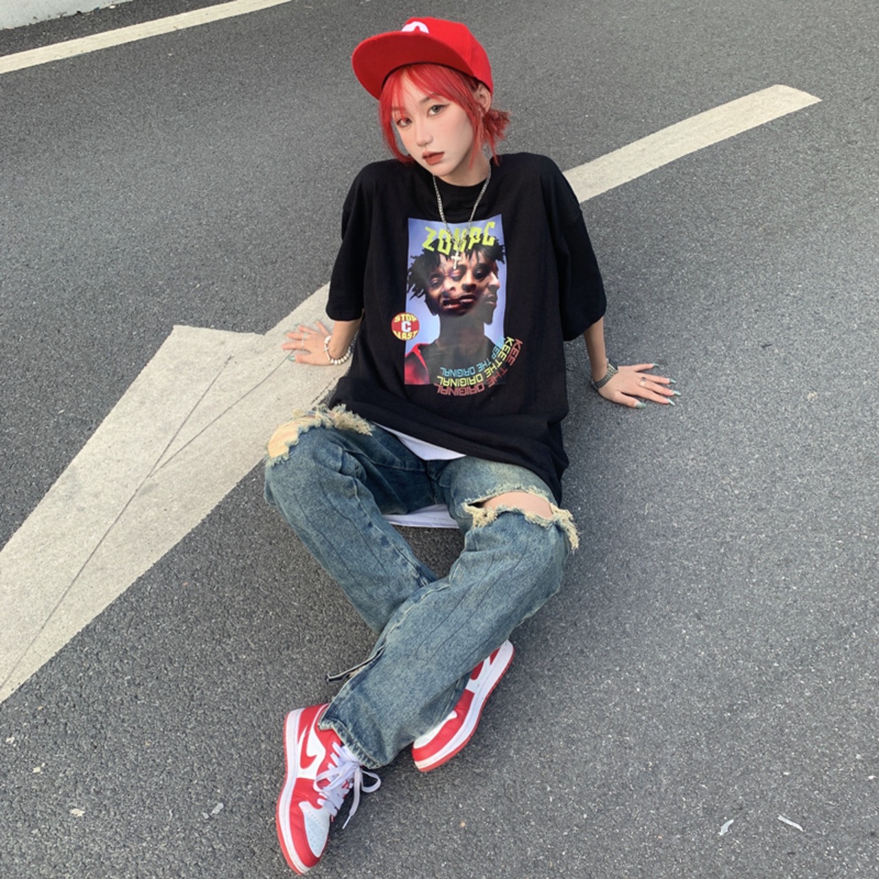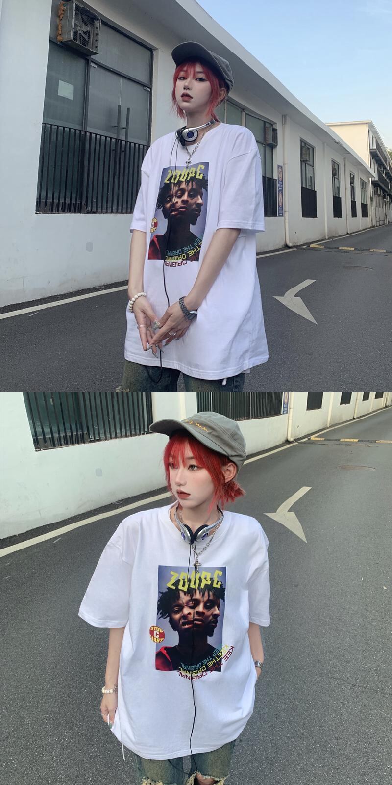 夏服韓国ファッションNEWスタイルプリント柄ルーズラウンドネックTシャツメンズレディース ストリート 夏物 Oネック ヨーロピアン Studios74664161884 | pLegLad Studios