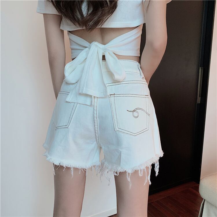 夏服韓国ファッションNEWスタイルスタンダードハイウェストウェスト薄手ショートパンツ ホワイトショーツ レディース レトロ 夏物 ウエスト Studios35351904096 | pLegLad Studios