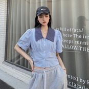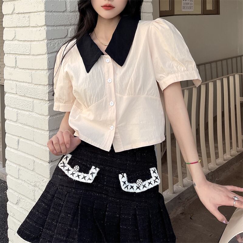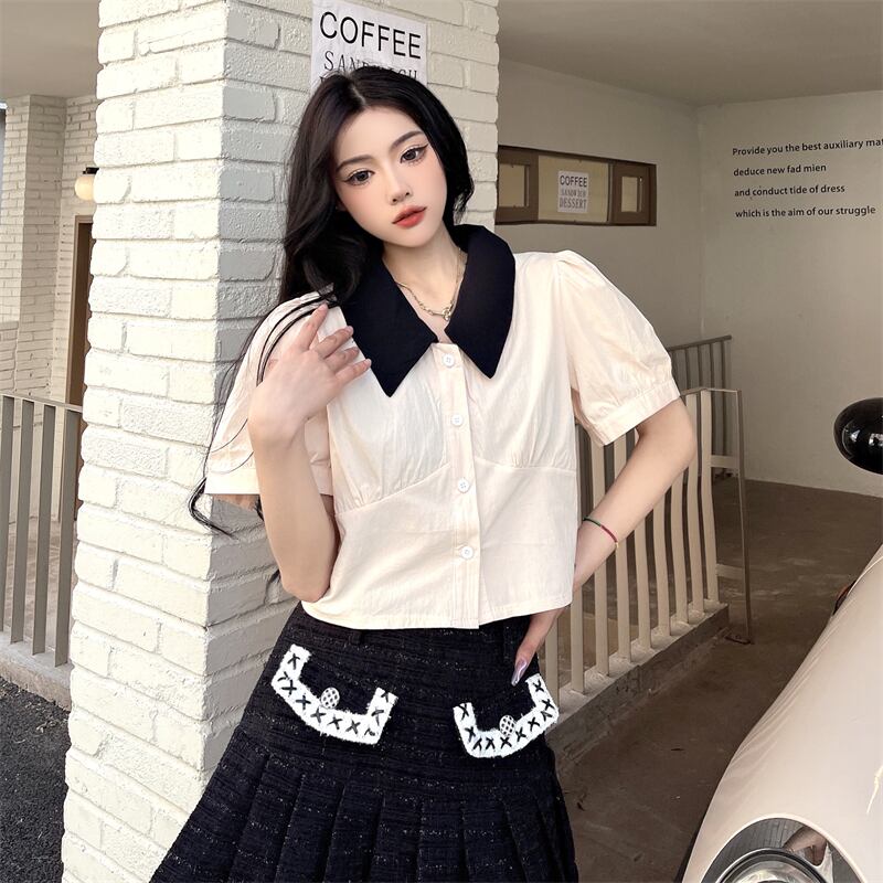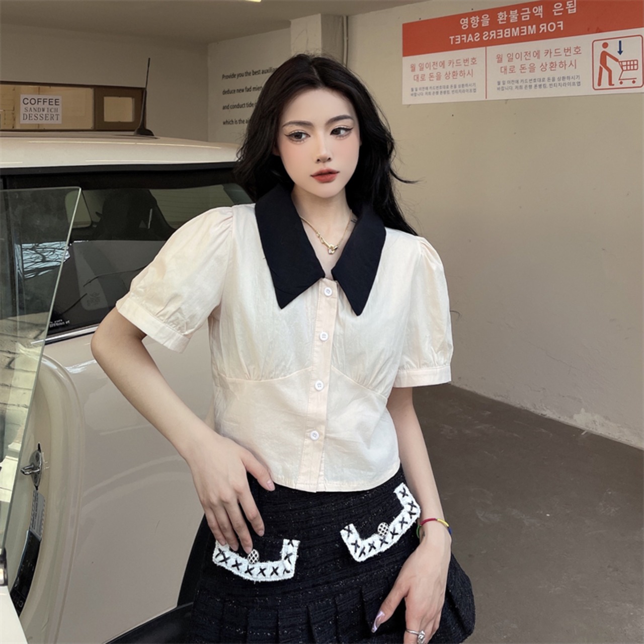 夏服韓国ファッションNEWスタイルスタンダードスリーブハイウェストウェストショート半袖シャツ レディース レトロ ハーフスリーブ 夏物 パフスリーブ ウエスト Studios90584930773 | pLegLad Studios