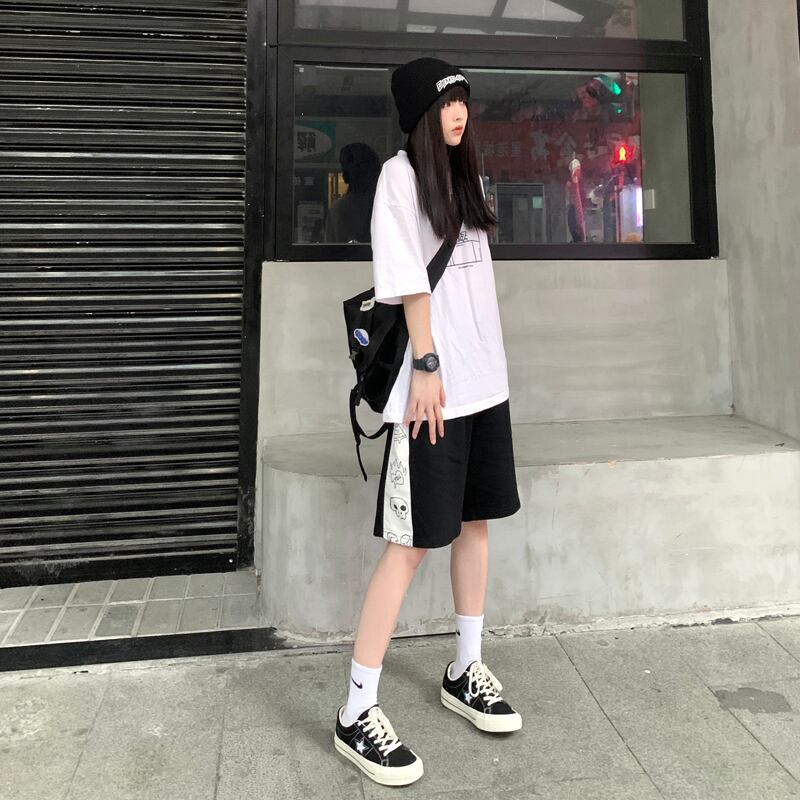 夏服韓国ファッションNEWスタイルスタンダードプリント柄ルーズ薄手パンツ ショーツ メンズレディース レトロ ストリート 原宿 夏物 ステッチ Studios63171638075 | pLegLad Studios